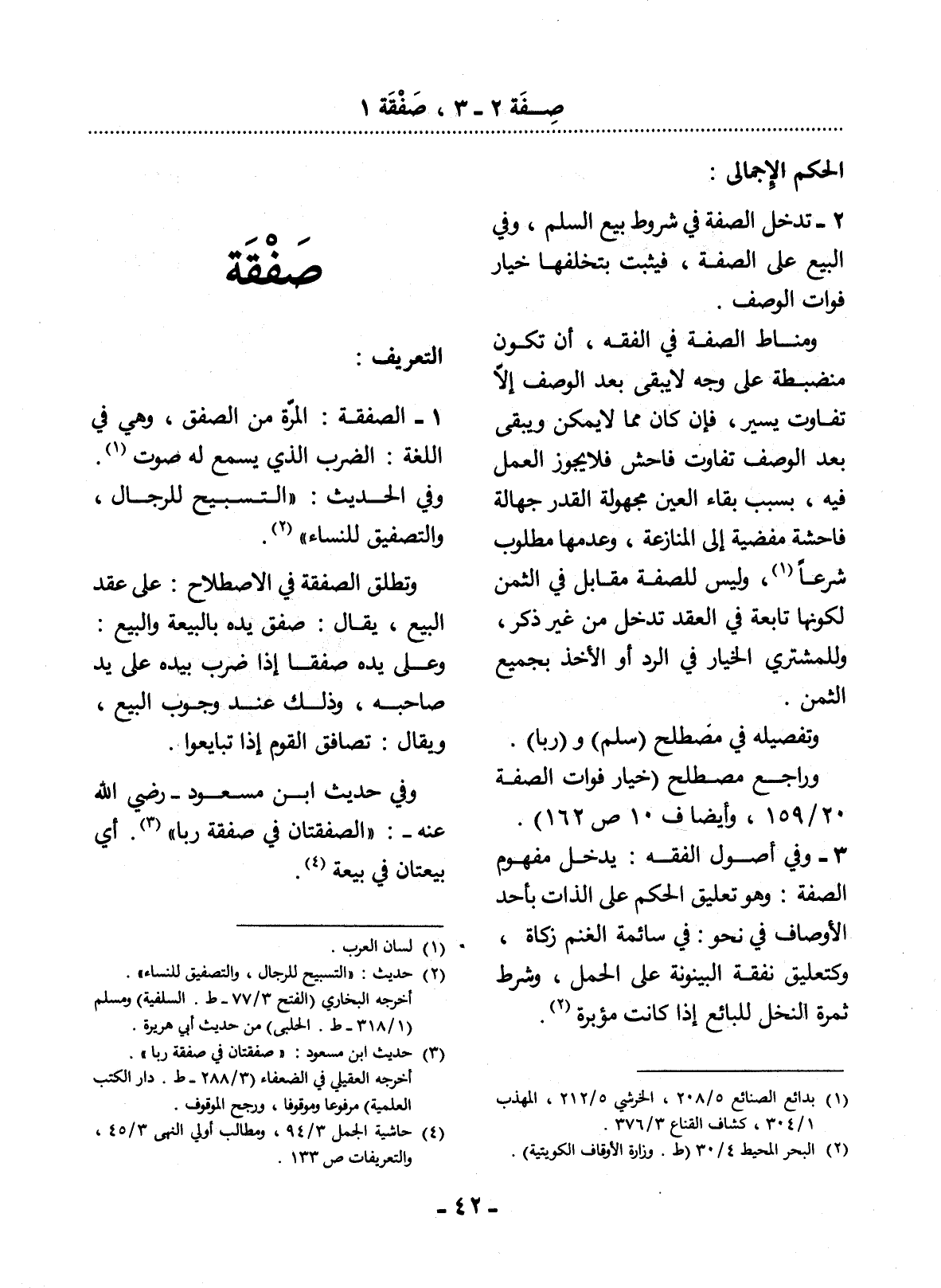 1 - الصَّفْقَةُ: الْمَرَّةُ مِنَ الصَّفْقِ، وَهِيَ فِي اللُّغَةِ: الضَّرْبُ الَّذِي يُسْمَعُ لَهُ صَوْتٌ (1) .