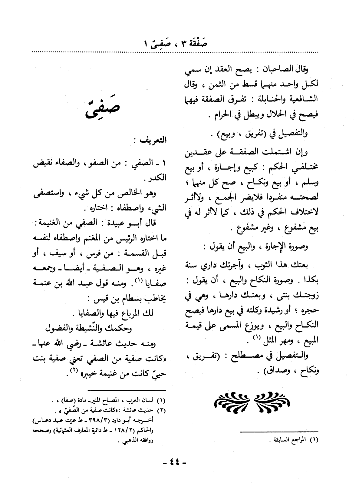 (1) لسان العرب، المصباح المنير - مادة (صفا) .