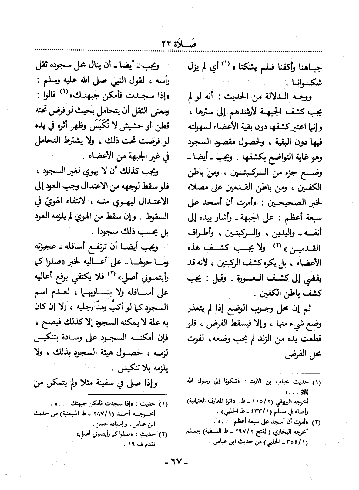 (2) " أمرت أن أسجد على سبعة أعظم. . . ". أخرجه البخاري (الفتح 2 / 297 - ط السلفية) ومسلم (1 / 354 - الحلبي) من حديث ابن عباس.