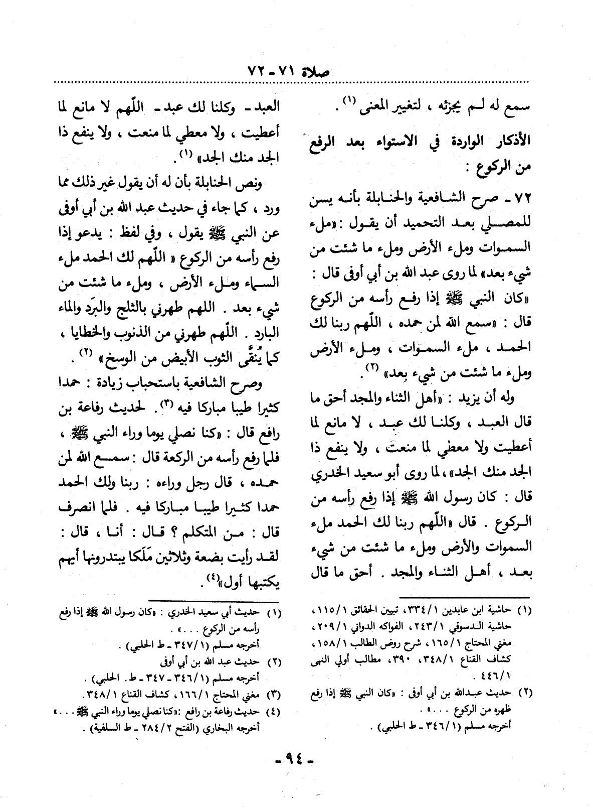 (1) حديث أبي سعيد الخدري: " كان رسول الله صلى الله عليه وسلم إذا رفع رأسه من الركوع. . . ". أخرجه مسلم (1 / 347 - ط الحلبي) .