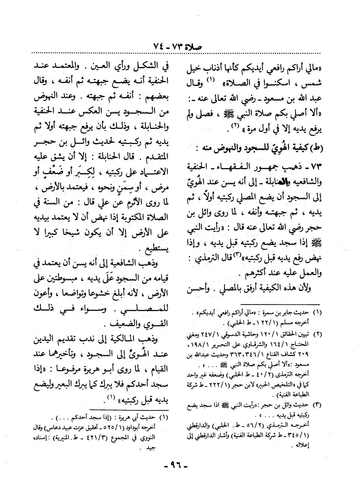 (2) تبيين الحقائق 1 / 120 وحاشية الدسوقي 1 / 247 ومغني المحتاج 1 / 164 والشرقاوي على التحرير 1 / 198، 209 كشاف القناع 1 / 346، 363 وحديث عبد الله بن مسعود: " ألا أصلي بكم صلاة النبي صلى الله عليه وسلم. . . ". أخرجه الترمذي (2 / 40 - ط الحلبي) وضعفه غير واحد كما في " التلخيص الحبير " لابن حجر (1 / 222 - ط شركة الطباعة الفنية) .
