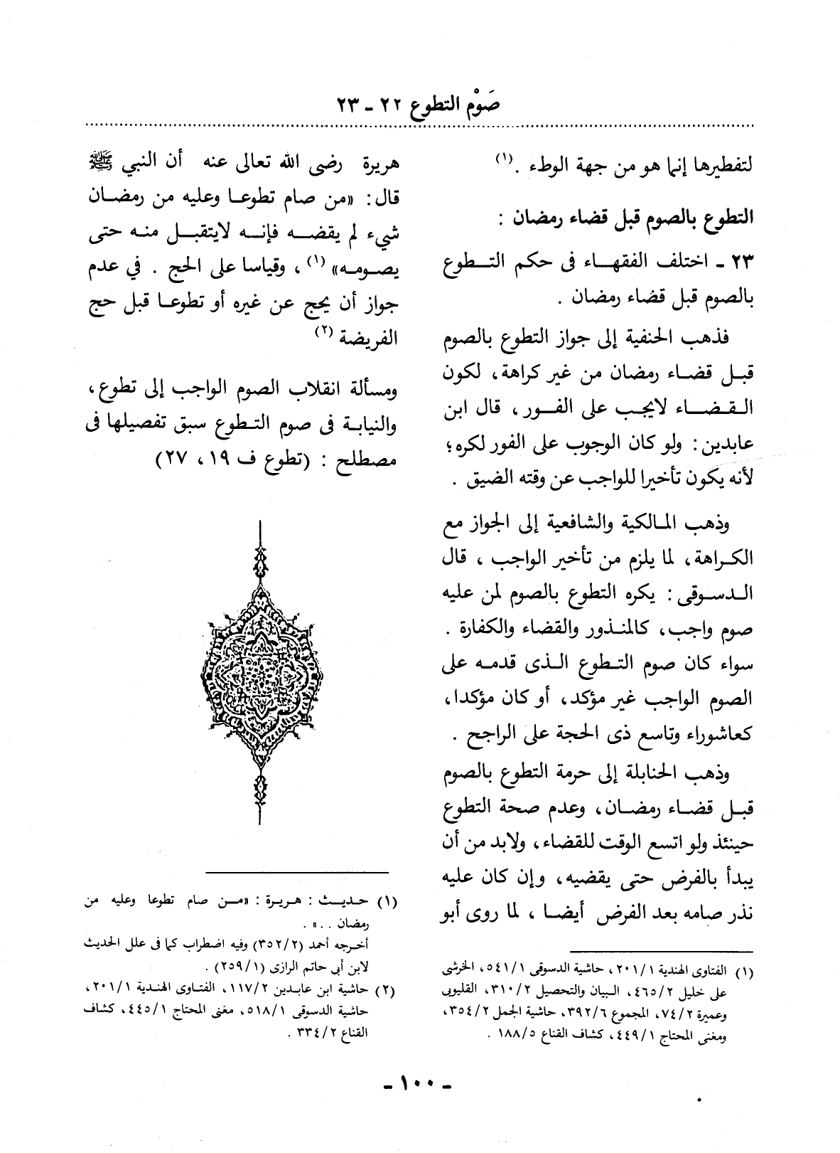 (2) حاشية ابن عابدين 2 / 117، الفتاوى الهندية 1 / 201، حاشية الدسوقي 1 / 518، مغني المحتاج 1 / 445، كشاف القناع 2 / 334.