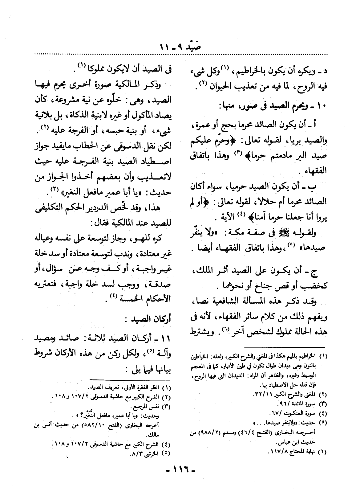 11 - أَرْكَانُ الصَّيْدِ ثَلاَثَةٌ: صَائِدٌ وَمَصِيدٌ وَآلَةٌ (5) ، وَلِكُل رُكْنٍ مِنْ هَذِهِ الأَْرْكَانِ شُرُوطٌ بَيَانُهَا فِيمَا يَلِي: