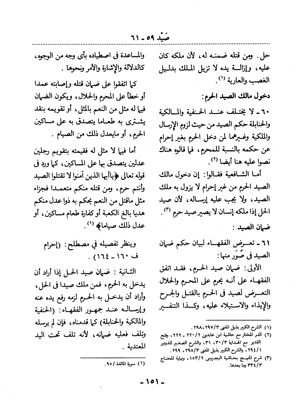 61 - تَعَرَّضَ الْفُقَهَاءُ لِبَيَانِ حُكْمِ ضَمَانِ الصَّيْدِ فِي صُوَرٍ مِنْهَا: