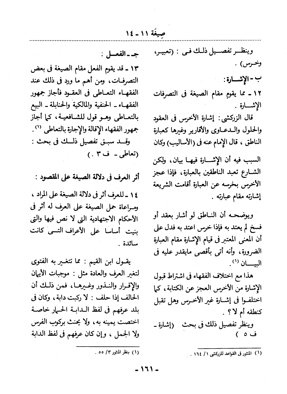 12 - مِمَّا يَقُومُ مَقَامَ الصِّيغَةِ فِي التَّصَرُّفَاتِ الإِْشَارَةُ.