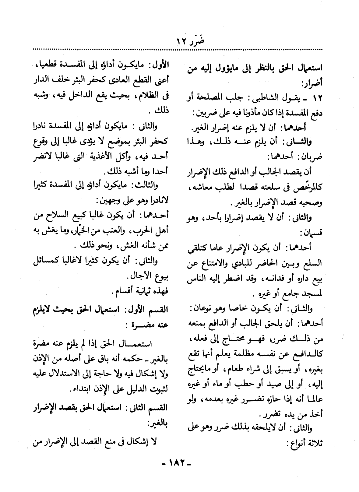 12 - يَقُول الشَّاطِبِيُّ: جَلْبُ الْمَصْلَحَةِ أَوْ دَفْعُ الْمَفْسَدَةِ إِذَا كَانَ مَأْذُونًا فِيهِ عَلَى ضَرْبَيْنِ: