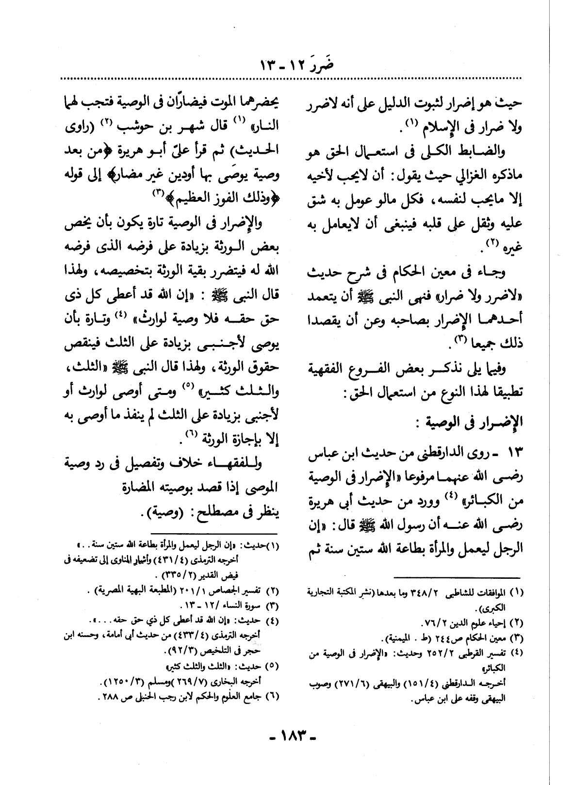 (4) تفسير القرطبي 2 / 252، وحديث: " الإضرار في الوصية من الكبائر ". أخرجه الدارقطني (4 / 151) والبيهقي (6 / 271) وصوب البيهقي وقفه على ابن عباس.