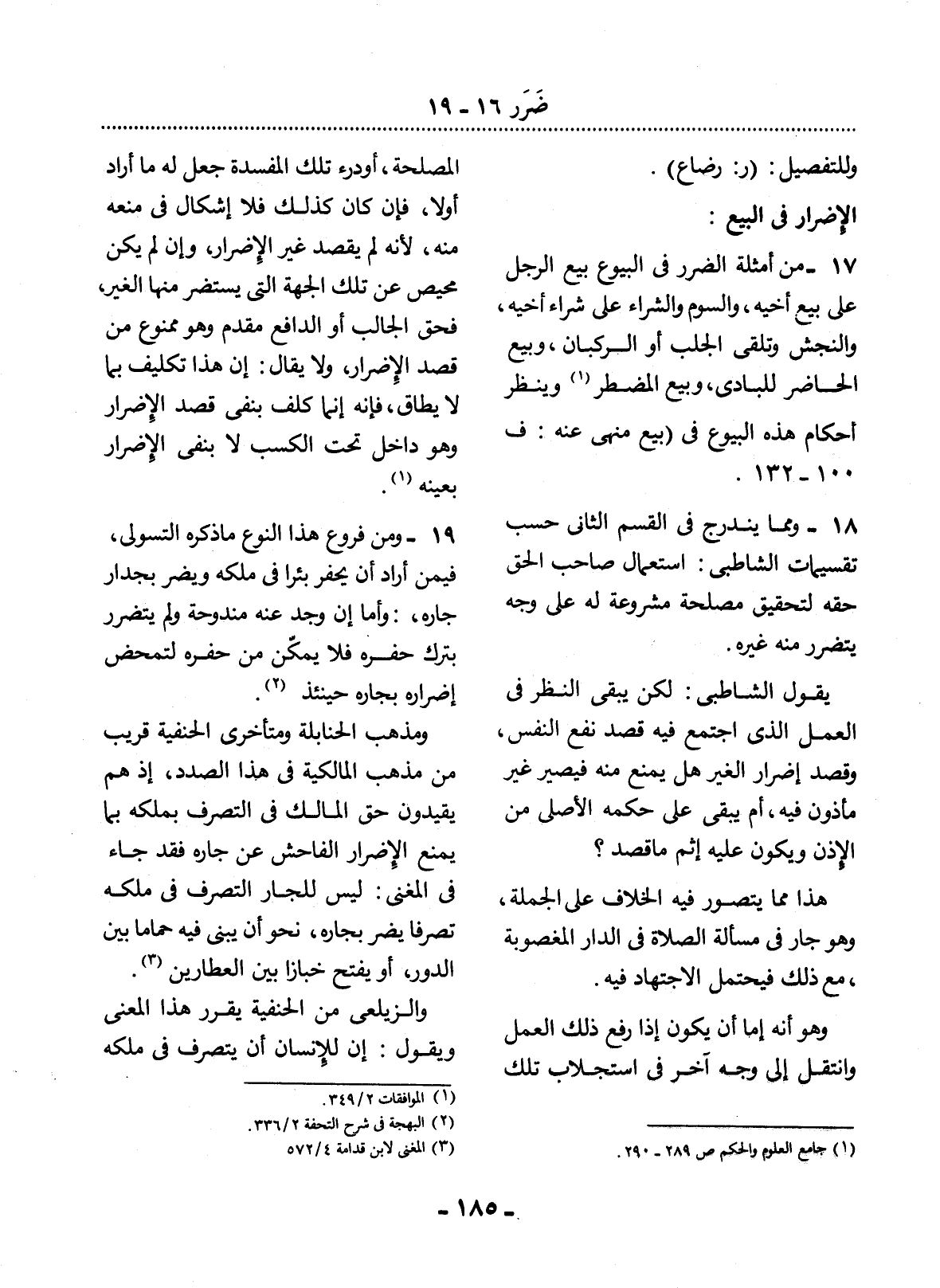 17 - مِنْ أَمْثِلَةِ الضَّرَرِ فِي الْبُيُوعِ بَيْعُ الرَّجُل عَلَى بَيْعِ أَخِيهِ، وَالسَّوْمُ وَالشِّرَاءُ عَلَى شِرَاءِ أَخِيهِ، وَالنَّجْشُ وَتَلَقِّي الْجَلْبَ أَوِ الرُّكْبَانِ، وَبَيْعُ الْحَاضِرِ لِلْبَادِي، وَبَيْعُ الْمُضْطَرِّ (1) وَيُنْظَرُ أَحْكَامُ هَذِهِ الْبُيُوعِ فِي (بَيْعٌ مَنْهِيٌّ عَنْهُ: ف 100 - 132) .