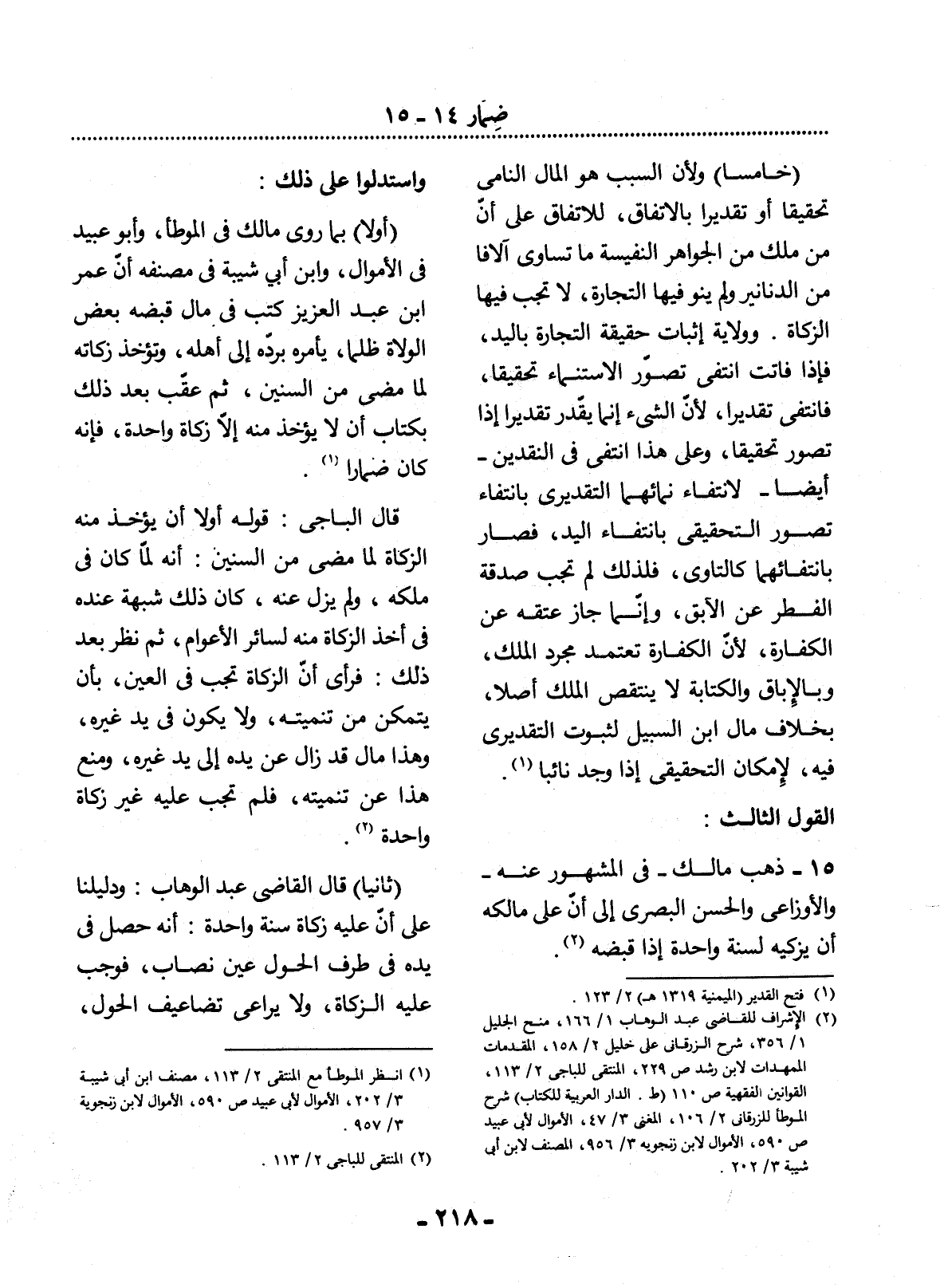 (2) الإشراف للقاضي عبد الوهاب 1 / 166، منح الجليل 1 / 356، شرح الزرقاني على خليل 2 / 158، المقدمات الممهدات لابن رشد ص 229، المنتقى للباجي 2 / 113، القوانين الفقهية ص 110 (ط. الدار العربية للكتاب) شرح الموطأ للزرقاني 2 / 106، المغني 3 / 47، الأموال لأبي عبيد ص 590، الأموال لابن زنجويه 3 / 956، المصنف لابن أبي شيبة 3 / 202.