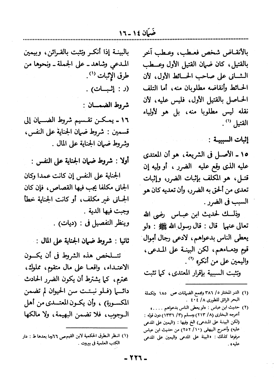15 - الأَْصْل فِي الشَّرِيعَةِ، هُوَ أَنَّ الْمُعْتَدَى عَلَيْهِ الَّذِي وَقَعَ عَلَيْهِ الضَّرَرُ، أَوْ وَلِيُّهُ إِنْ قُتِل، هُوَ الْمُكَلَّفُ بِإِثْبَاتِ الضَّرَرِ، وَإِثْبَاتِ تَعَدِّي مَنْ أُلْحَقَ بِهِ الضَّرَرُ، وَأَنَّ تَعَدِّيَهُ كَانَ هُوَ السَّبَبَ فِي الضَّرَرِ.