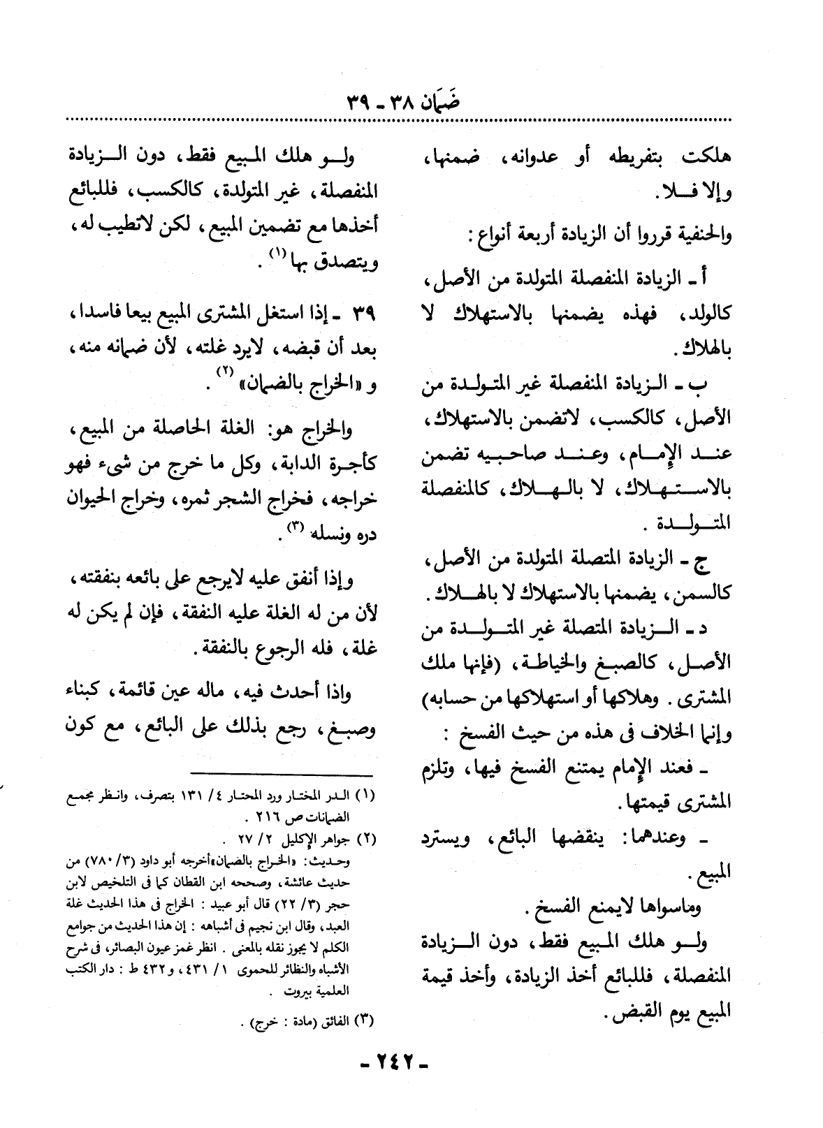 39 - إِذَا اسْتَغَل الْمُشْتَرِي الْمَبِيعَ بَيْعًا فَاسِدًا، بَعْدَ أَنْ قَبَضَهُ، لاَ يَرُدُّ غَلَّتَهُ، لأَِنَّ ضَمَانَهُ مِنْهُ، وَالْخَرَاجُ بِالضَّمَانِ (2) .
