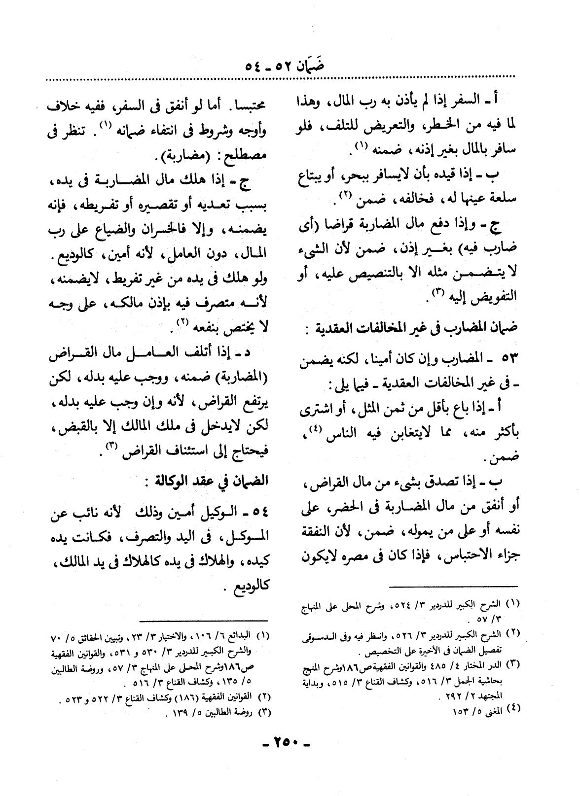 53 - الْمُضَارِبُ وَإِنْ كَانَ أَمِينًا، لَكِنَّهُ يَضْمَنُ - فِي غَيْرِ الْمُخَالَفَاتِ الْعَقَدِيَّةِ - فِيمَا يَلِي: