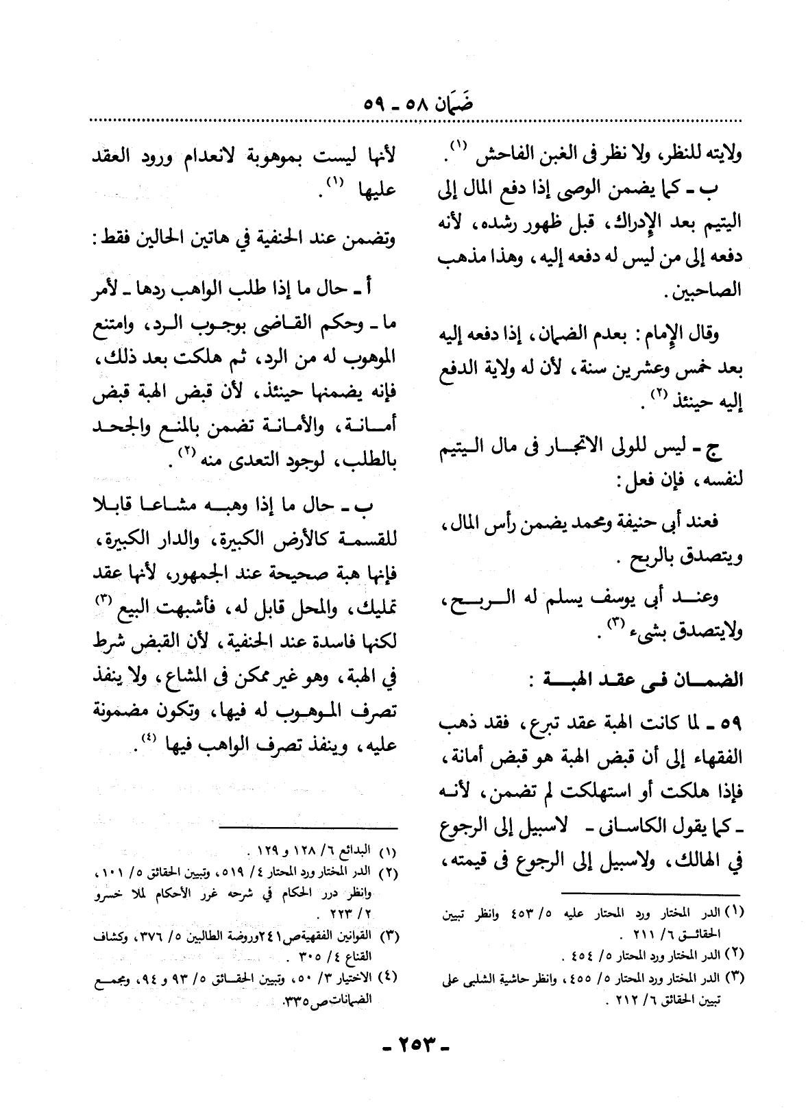 (1) الدر المختار ورد المحتار عليه 5 / 453 وانظر تبيين الحقائق 6 / 211.