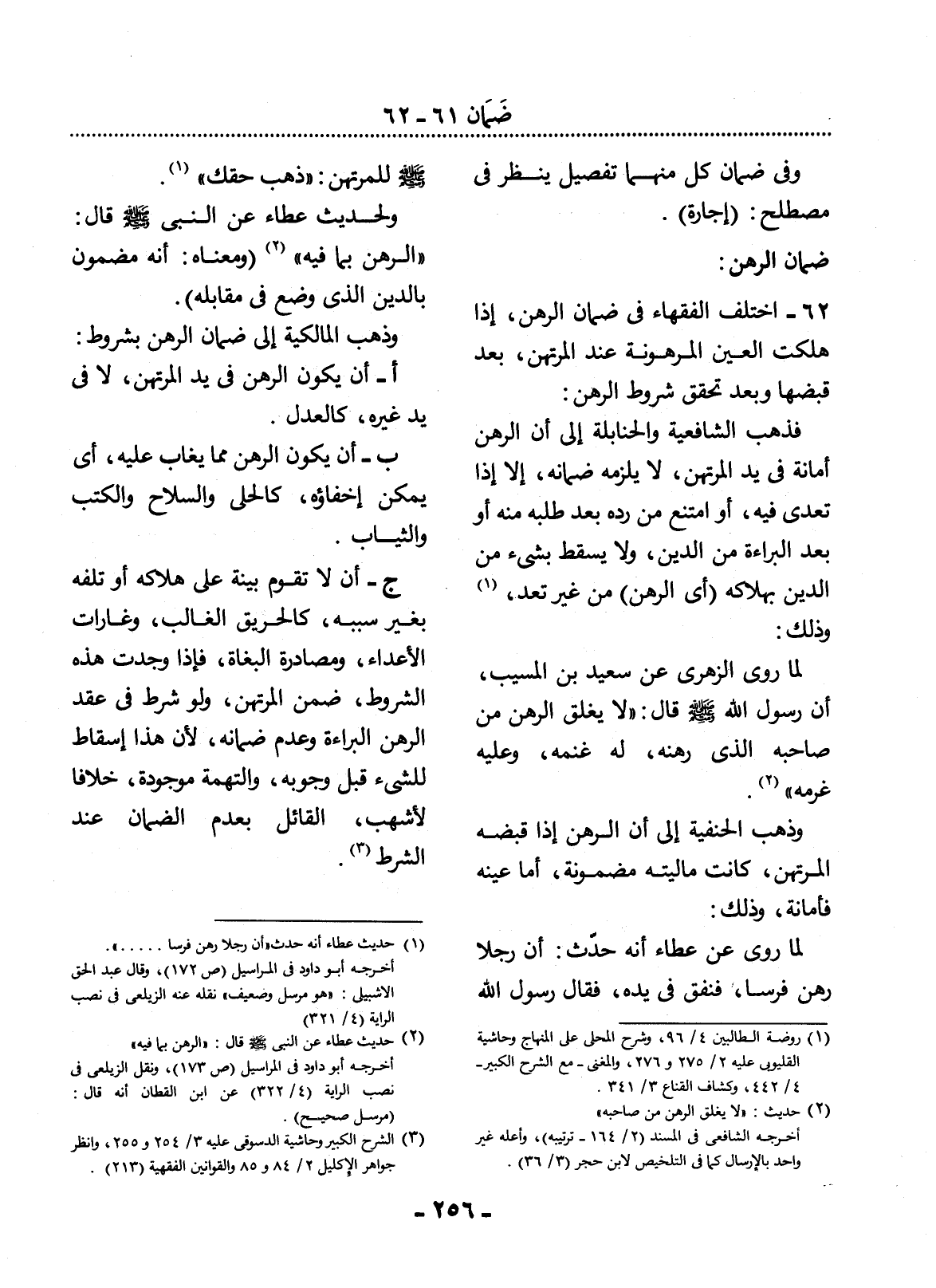 62 - اخْتَلَفَ الْفُقَهَاءُ فِي ضَمَانِ الرَّهْنِ، إِذَا هَلَكَتِ الْعَيْنُ الْمَرْهُونَةُ عِنْدَ الْمُرْتَهِنِ، بَعْدَ قَبْضِهَا وَبَعْدَ تَحَقُّقِ شُرُوطِ الرَّهْنِ: