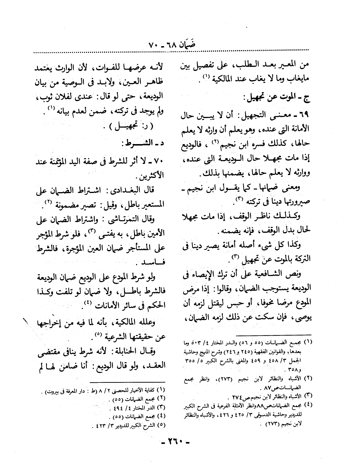 (1) مجمع الضمانات (55 و 56) والدر المختار 4 / 503 وما بعدها، والقوانين الفقهية (245 و 246) وشرح المنهج وحاشية الجمل 3 / 458 و 459 والمغني بالشرح الكبير 5 / 355 و 358.