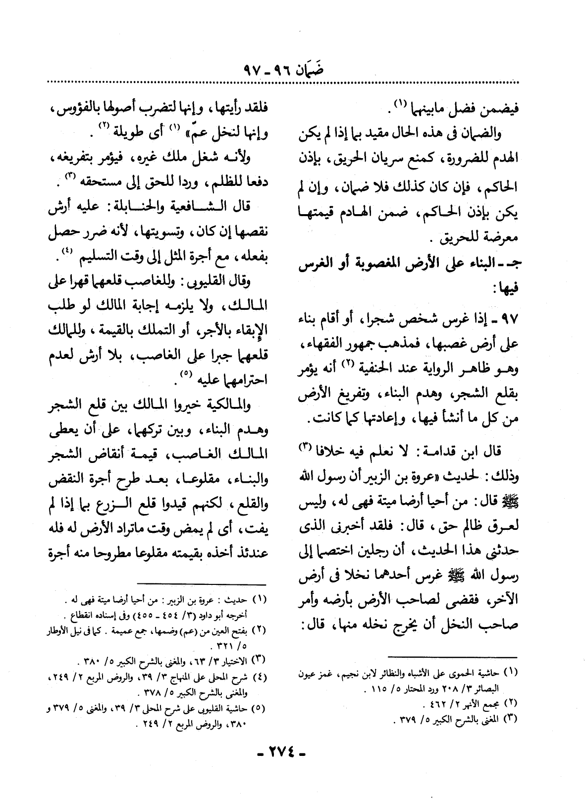 (1) حاشية الحموي على الأشباه والنظائر لابن نجيم، غمز عيون البصائر 3 / 208 ورد المحتار 5 / 115.