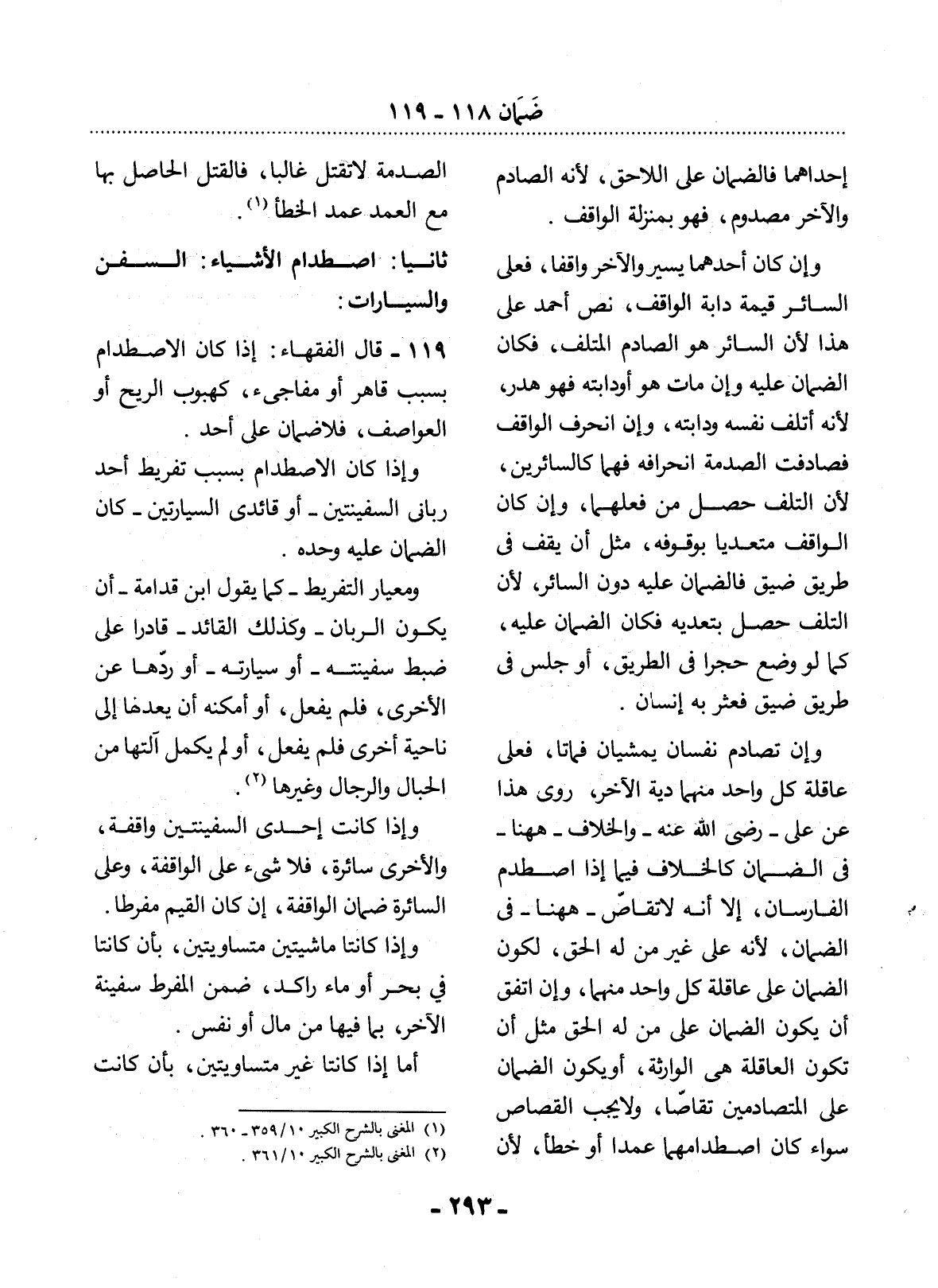 ثَانِيًا: اصْطِدَامُ الأَْشْيَاءِ: السُّفُنِ وَالسَّيَّارَاتِ:
