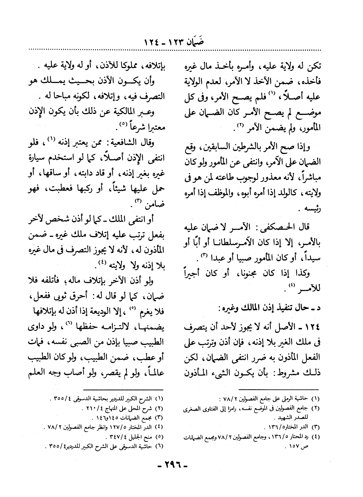 (4) رد المحتار 5 / 136، وجامع الفصولين 2 / 78، ومجمع الضمانات ص 157.