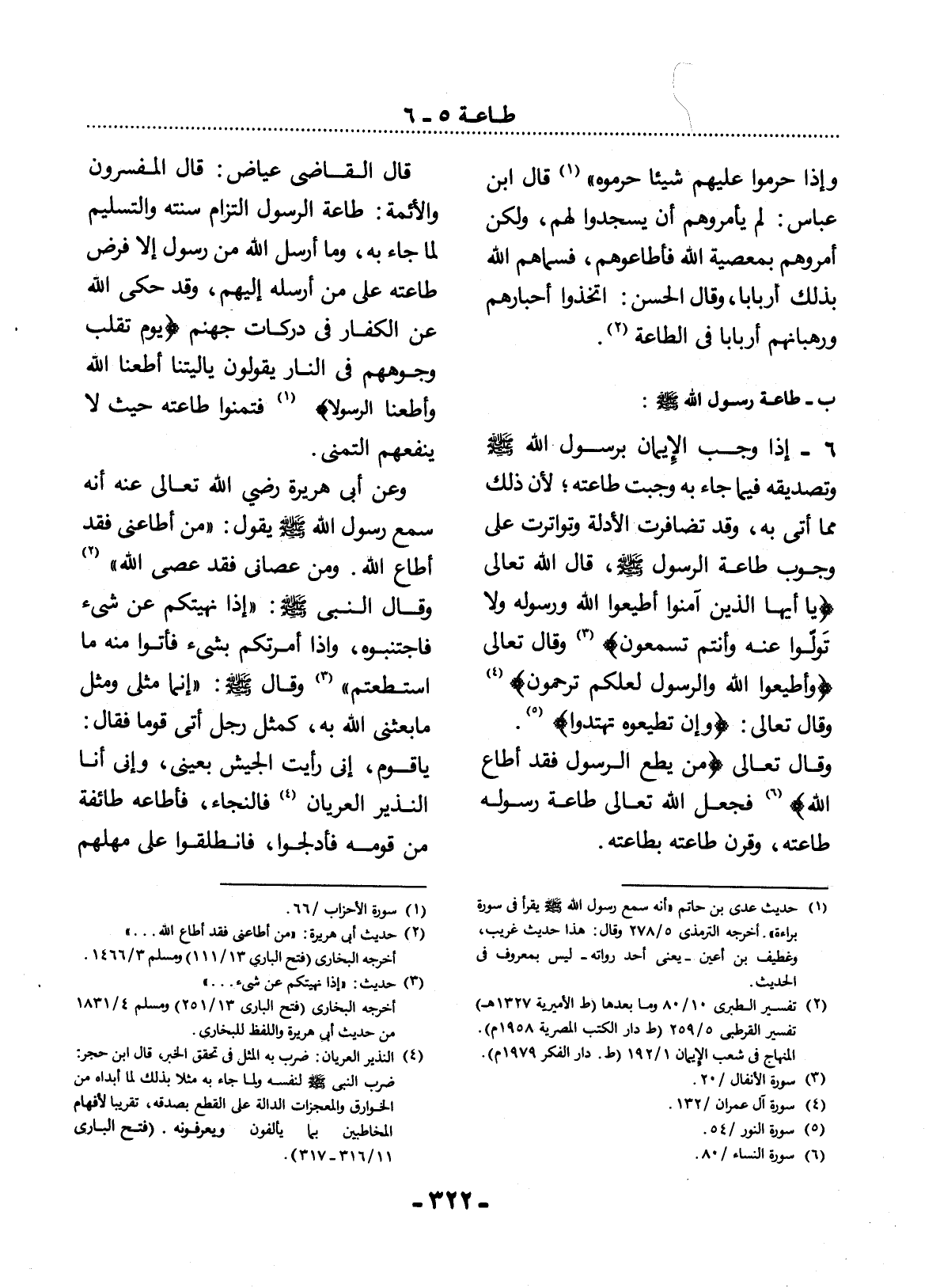 (2) حديث أبي هريرة: " من أطاعني فقد أطاع الله. . . ". أخرجه البخاري (فتح الباري 13 / 111) ، ومسلم 3 / 1466.