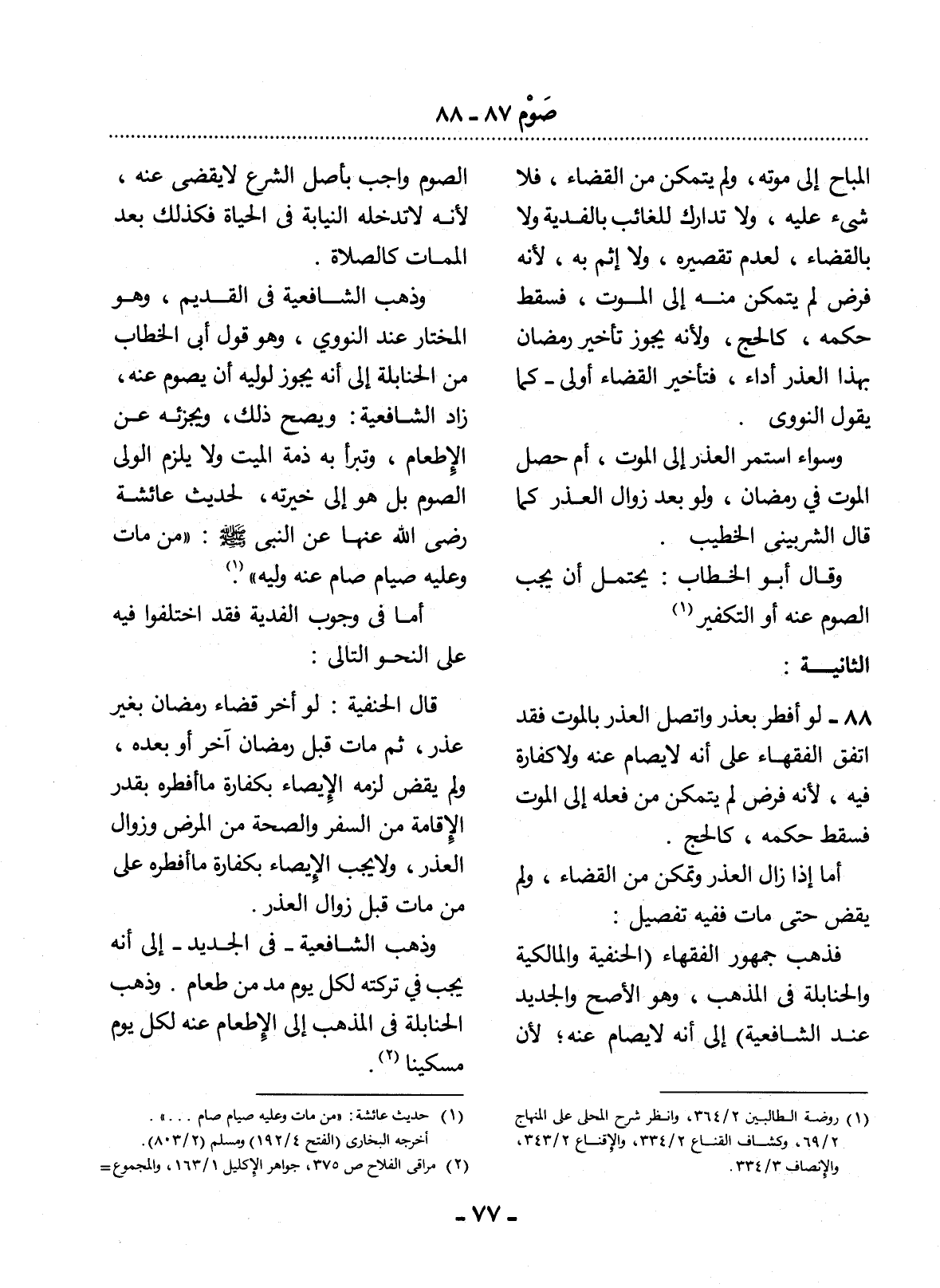 (1) روضة الطالبين 2 / 364، وانظر شرح المحلي على المنهاج 2 / 69، وكشاف القناع 2 / 334، والإقناع 2 / 343، والإنصاف 3 / 334.