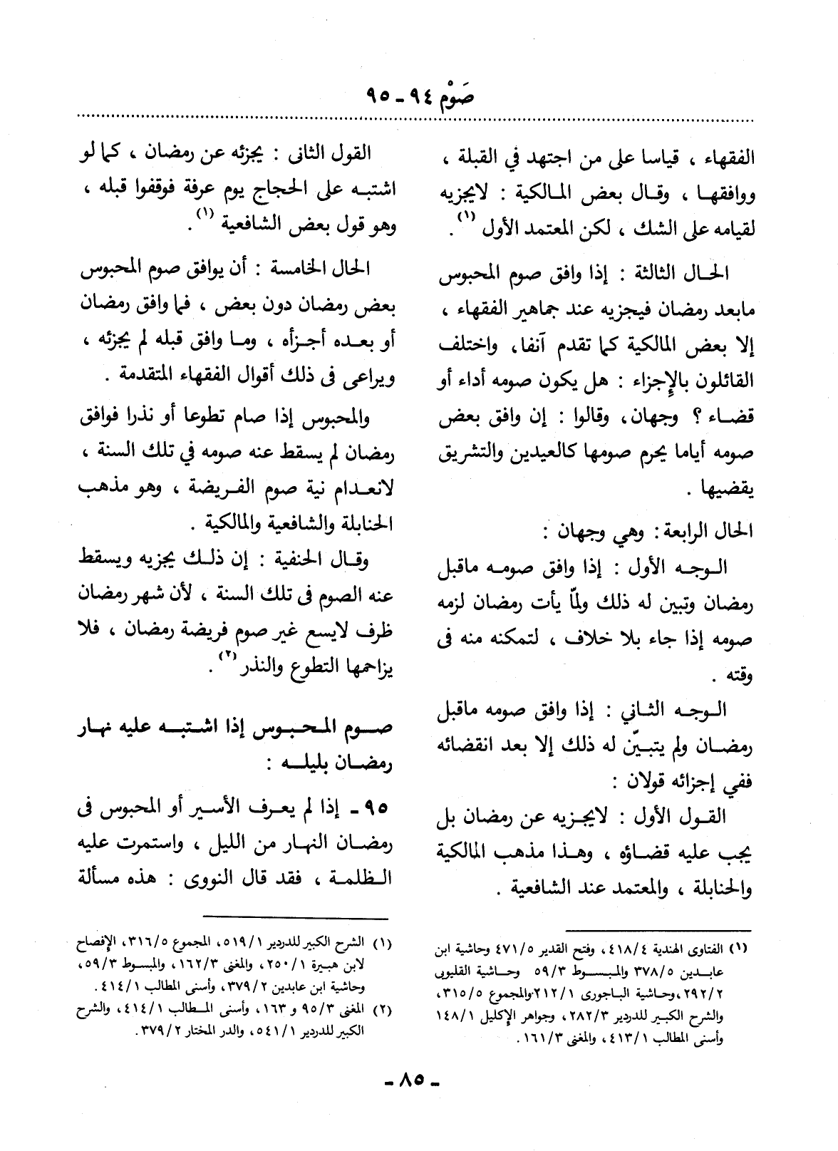 95 - إِذَا لَمْ يَعْرِفِ الأَْسِيرُ أَوِ الْمَحْبُوسُ فِي رَمَضَانَ النَّهَارَ مِنَ اللَّيْل، وَاسْتَمَرَّتْ عَلَيْهِ الظُّلْمَةُ، فَقَدْ قَال النَّوَوِيُّ: هَذِهِ مَسْأَلَةٌ