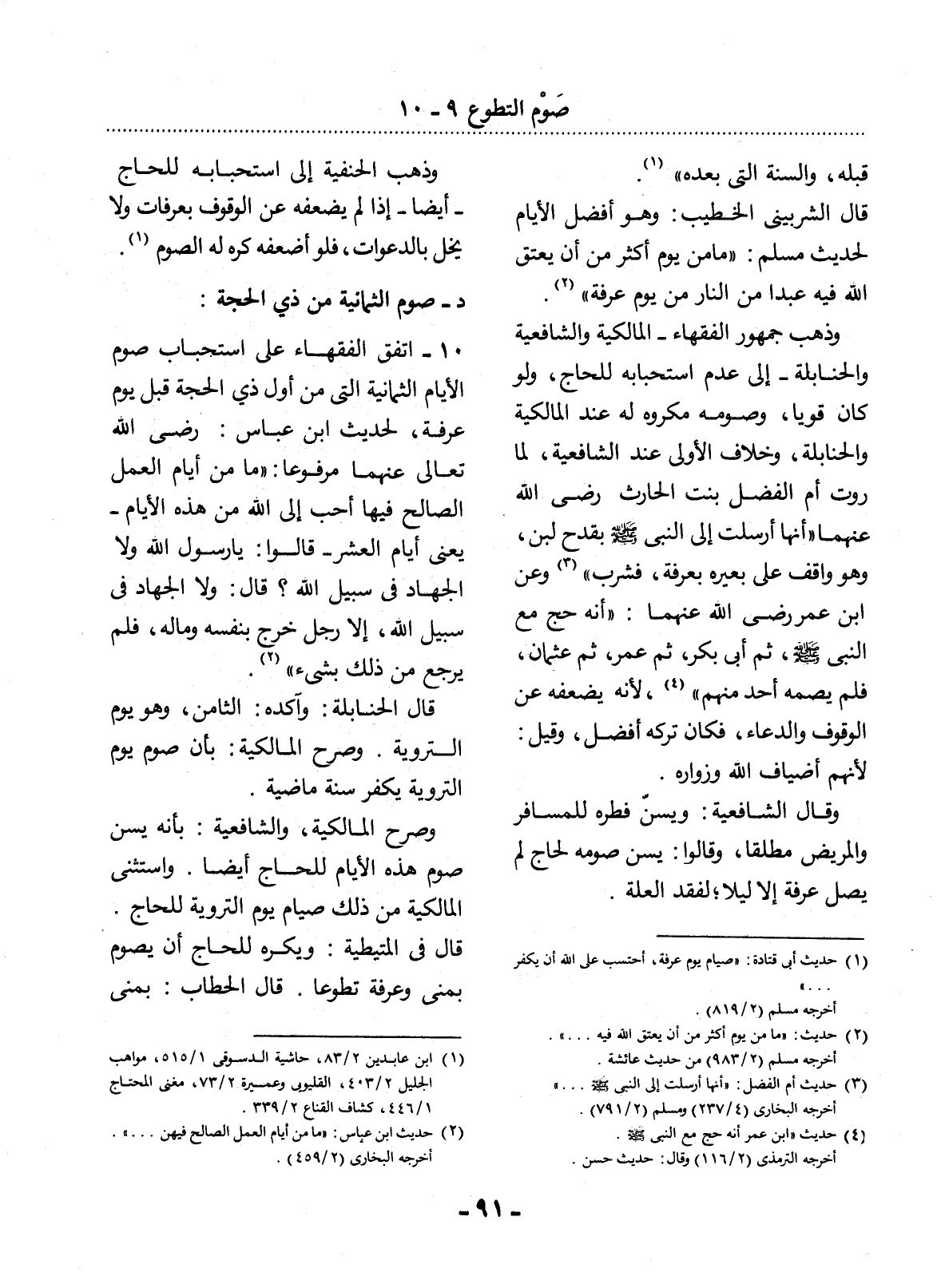 (1) حديث أبي قتادة: " صيام يوم عرفة، أحتسب على الله أن يكفر. . . ". أخرجه مسلم (2 / 819) .
