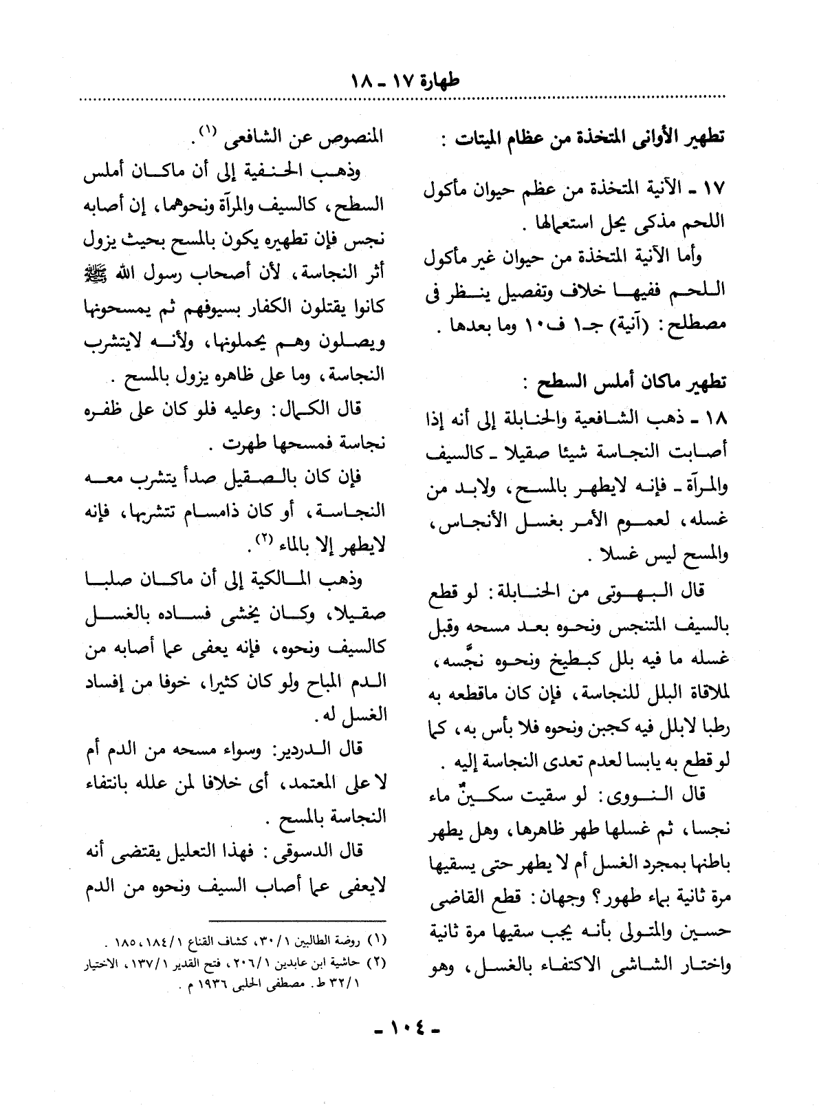 (2) حاشية ابن عابدين 1 / 206، فتح القدير 1 / 137، الاختيار 1 / 32 ط. مصطفى الحلبي 1936م.