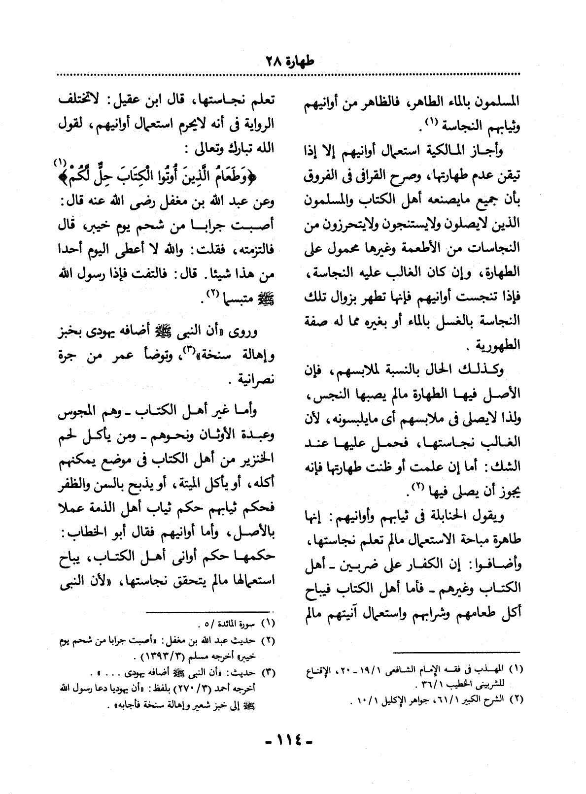 (1) المهذب في فقه الإمام الشافعي 1 / 19 - 20، الإقناع للشربيني الخطيب 1 / 36.