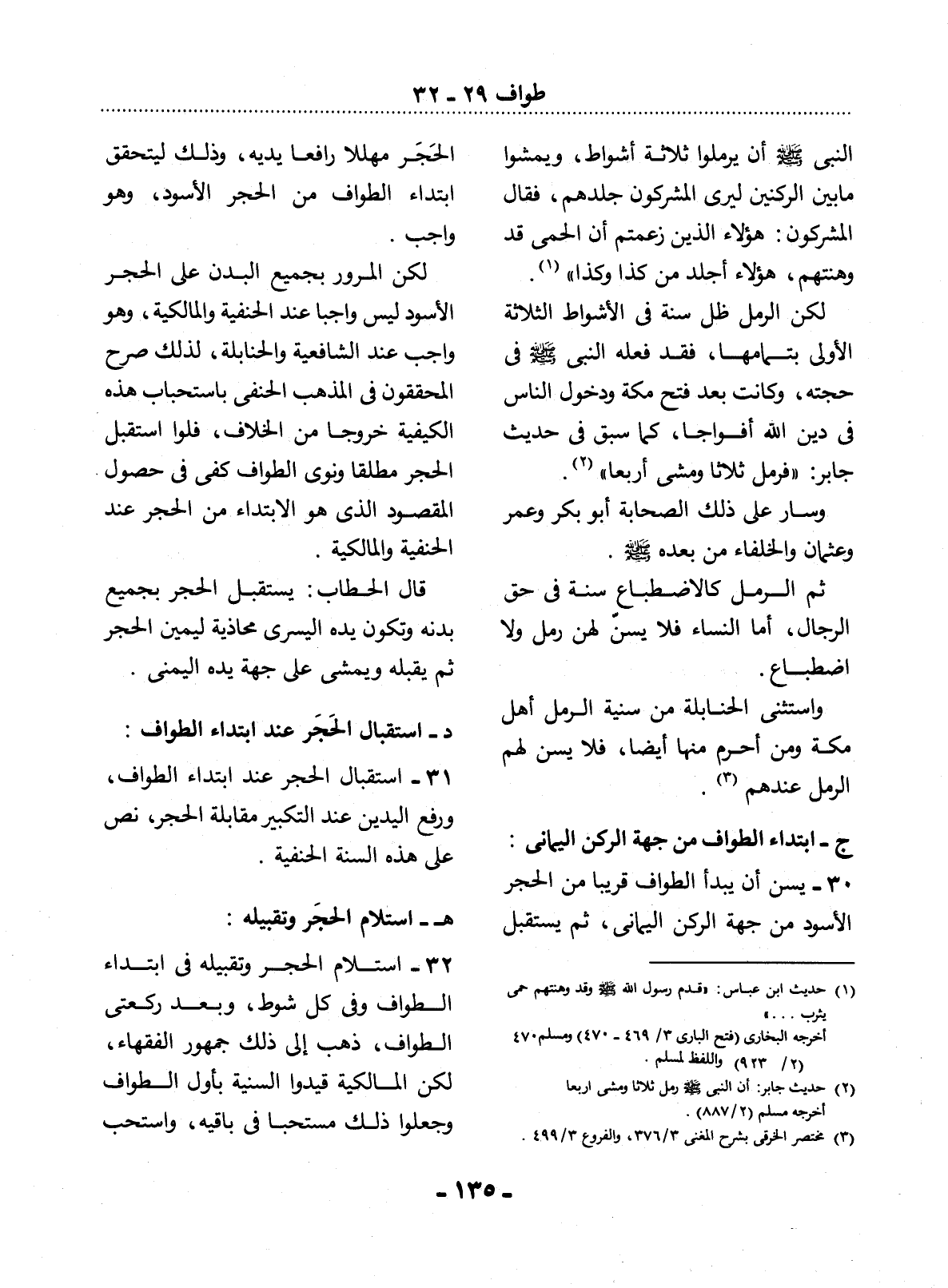 (2) حديث جابر: " أن النبي صلى الله عليه وسلم رمل ثلاثا ومشى أربعا ". أخرجه مسلم (2 / 887) .