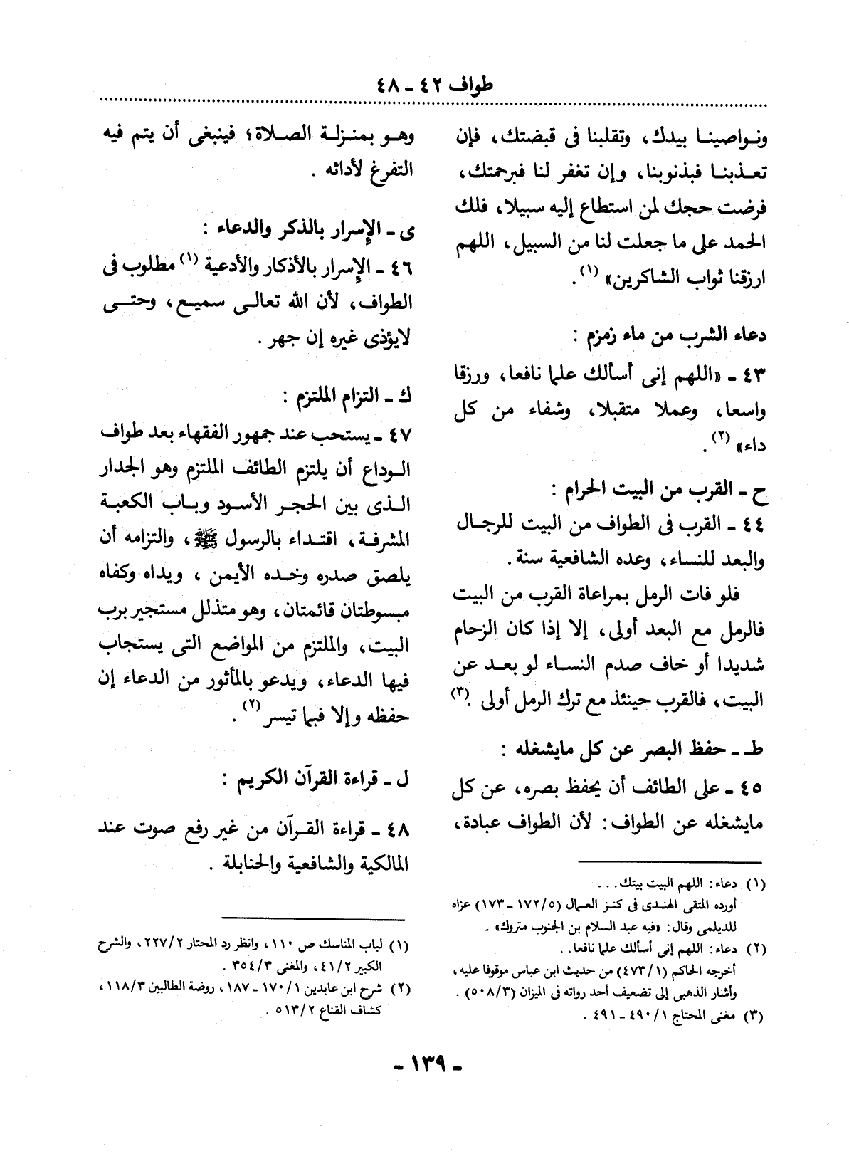(1) لباب المناسك ص 110، وانظر رد المحتار 2 / 227، والشرح الكبير 2 / 41، والمغني 3 / 354.