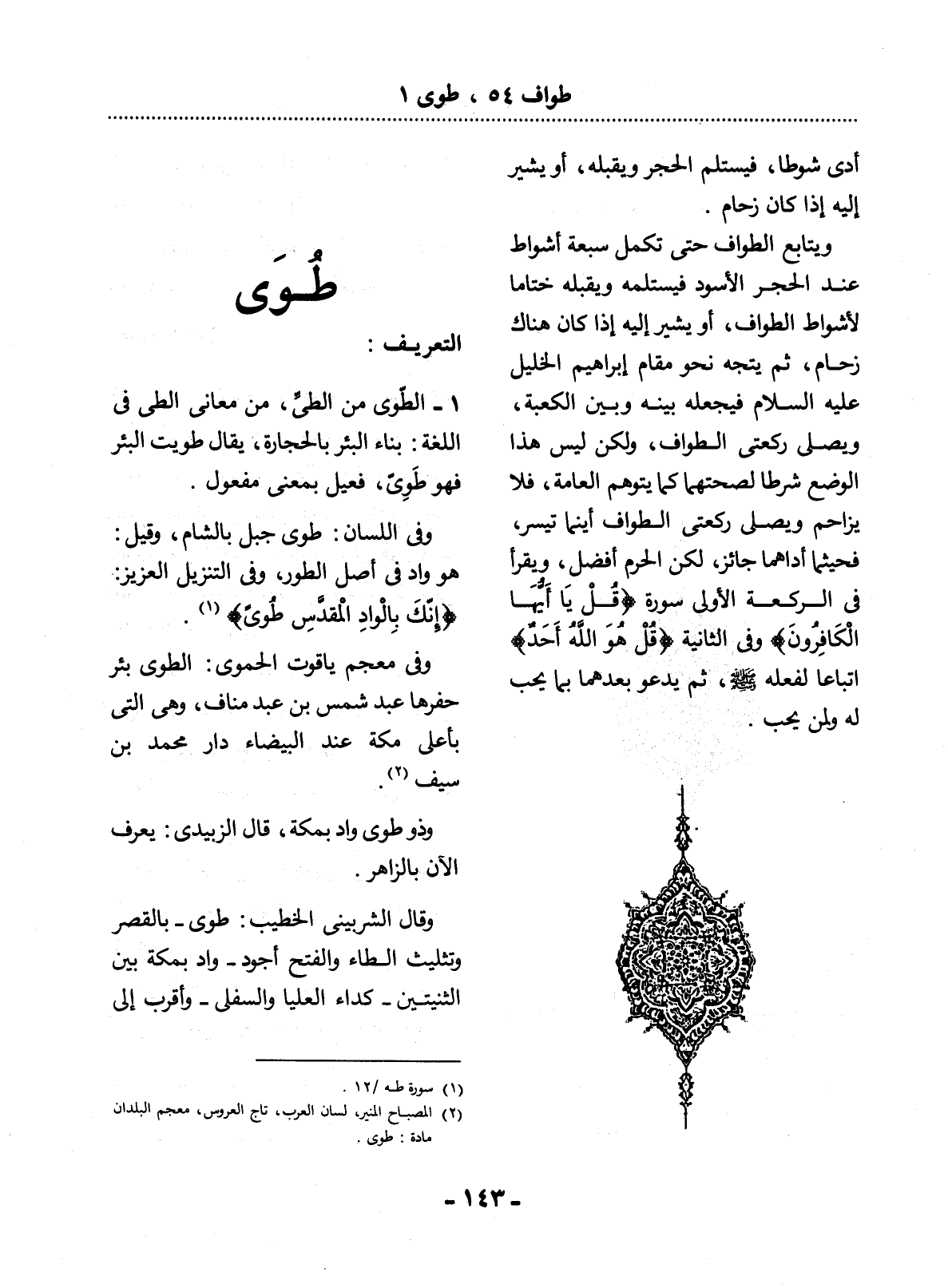 (2) المصباح المنير، لسان العرب، تاج العروس، معجم البلدان مادة: طوى.