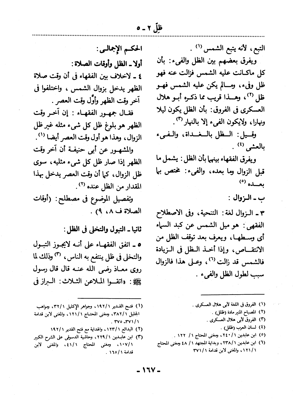 أَوَّلاً - الظِّل وَأَوْقَاتُ الصَّلاَةِ: