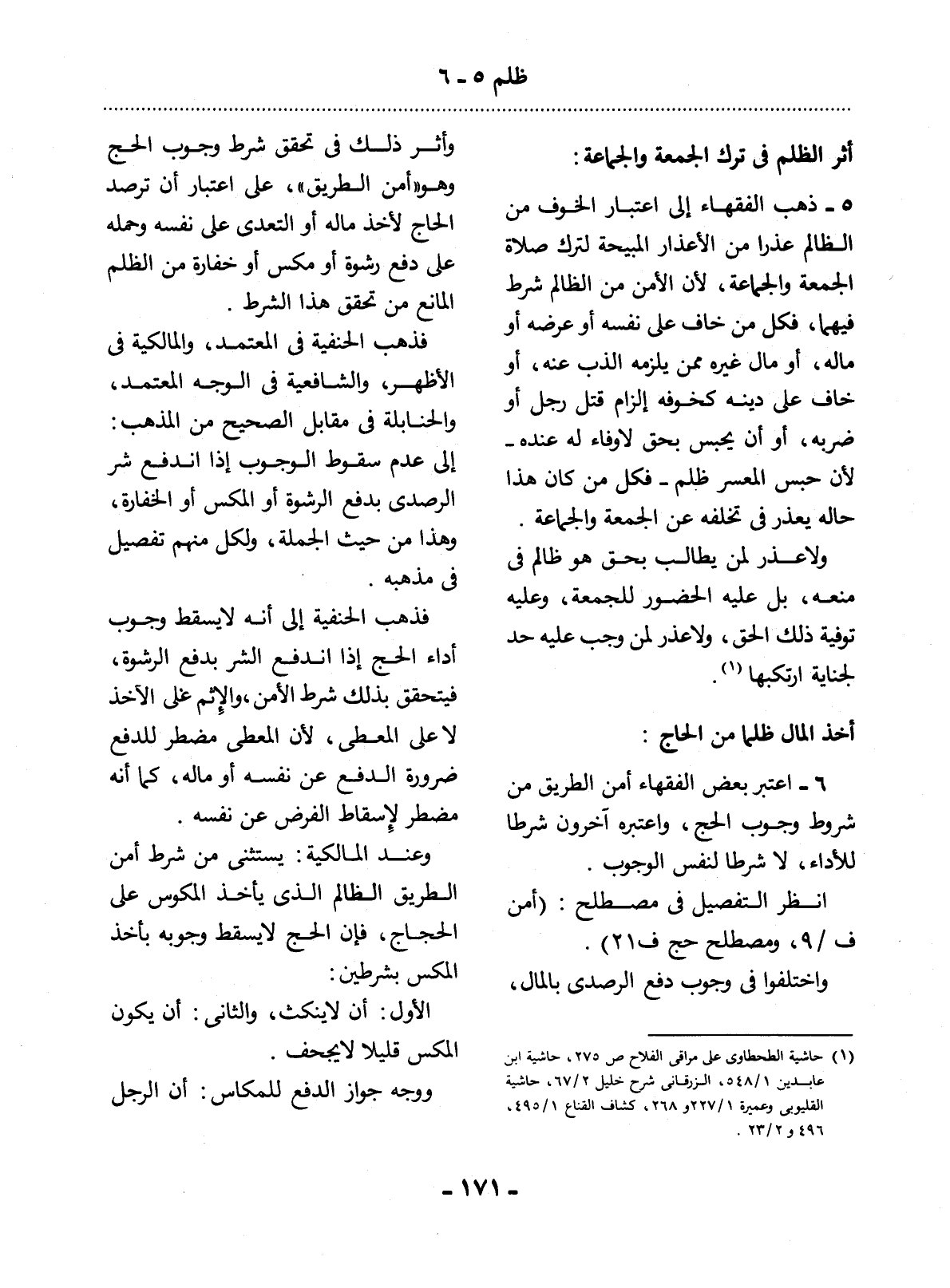 أَثَرُ الظُّلْمِ فِي تَرْكِ الْجُمُعَةِ وَالْجَمَاعَةِ: