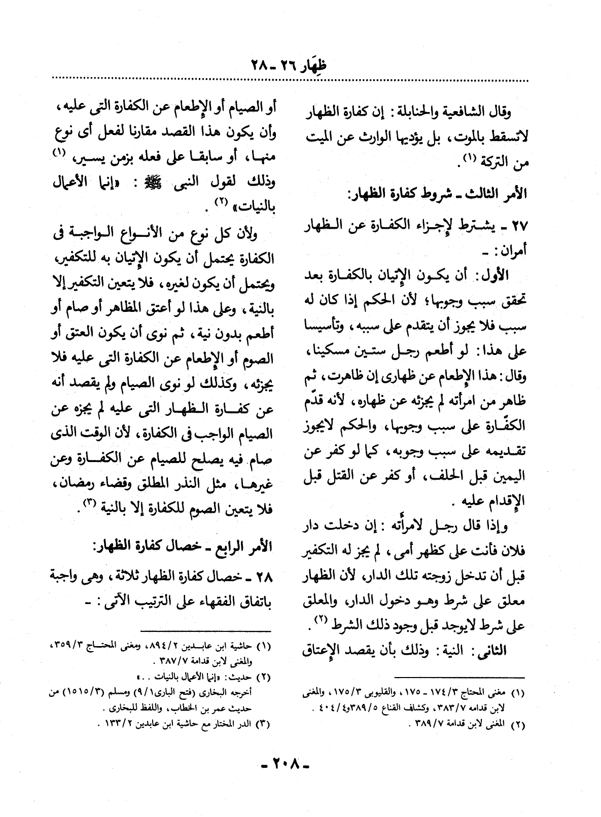 27 - يُشْتَرَطُ لإِِجْزَاءِ الْكَفَّارَةِ عَنِ الظِّهَارِ أَمْرَانِ:
