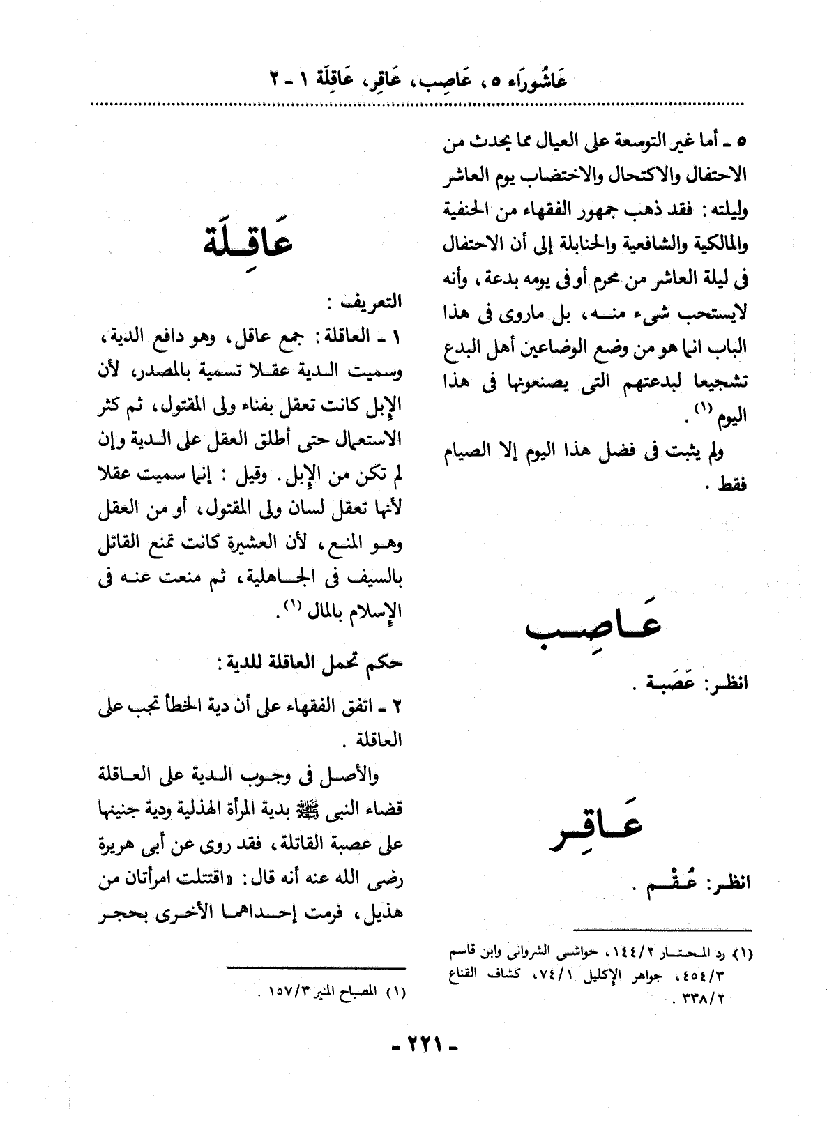 حُكْمُ تَحَمُّل الْعَاقِلَةِ لِلدِّيَةِ: