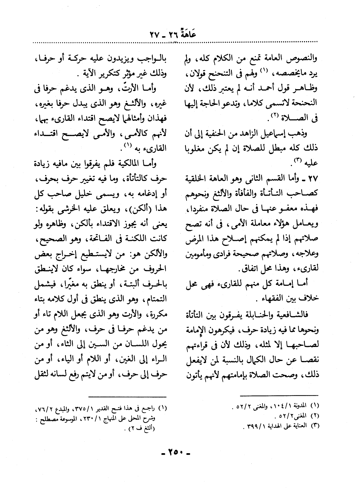 (1) راجع في هذا فتح القدير 1 / 375، والمبدع 2 / 76 وشرح المحلي على المنهاج 1 / 230، الموسوعة مصطلح (ألثغ ف 2) .
