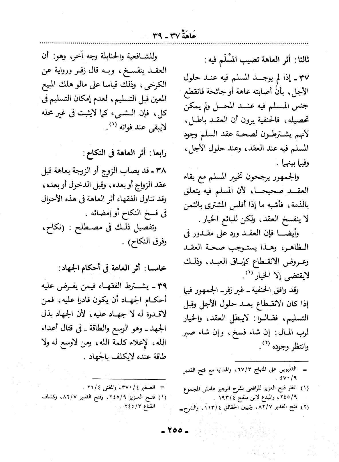 37 - إِذَا لَمْ يُوجَدِ الْمُسْلَمُ فِيهِ عِنْدَ حُلُول الأَْجَل، بِأَنْ أَصَابَتْهُ عَاهَةٌ أَوْ جَائِحَةٌ فَانْقَطَعَ جِنْسُ الْمُسْلَمِ فِيهِ عِنْدَ الْمَحَل وَلَمْ يُمْكِنْ تَحْصِيلُهُ، فَالْحَنَفِيَّةُ يَرَوْنَ أَنَّ الْعَقْدَ بَاطِلٌ، لأَِنَّهُمْ يَشْتَرِطُونَ لِصِحَّةِ عَقْدِ الْمُسْلِمِ وُجُودَ الْمُسْلَمِ فِيهِ عِنْدَ الْعَقْدِ، وَعِنْدَ حُلُول الأَْجَل، وَفِيمَا بَيْنَهُمَا.