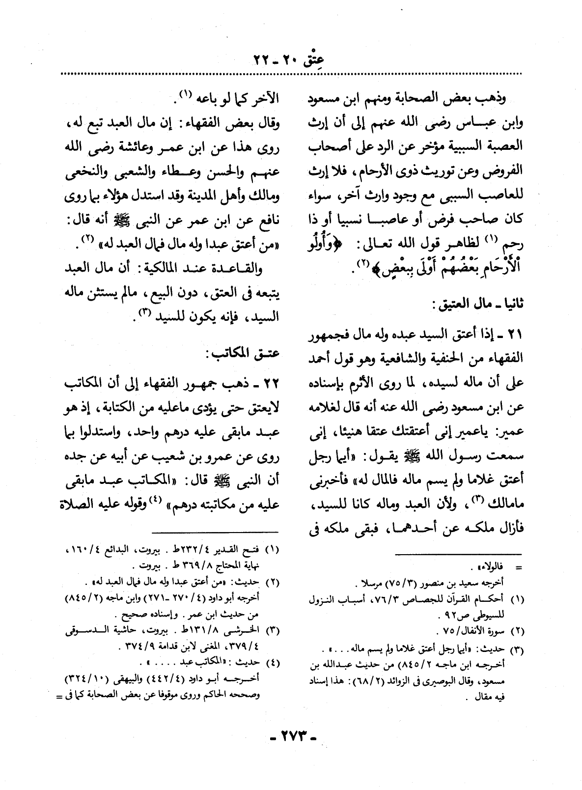 (4) حديث: " المكاتب عبد. . . ". أخرجه أبو داود (4 / 442) والبيهقي (10 / 324) وصححه الحاكم وروي موقوفا عن بعض الصحابة كما في فتح الباري (5 / 195) من حديث عمرو بن شعيب عن أبيه عن جده.