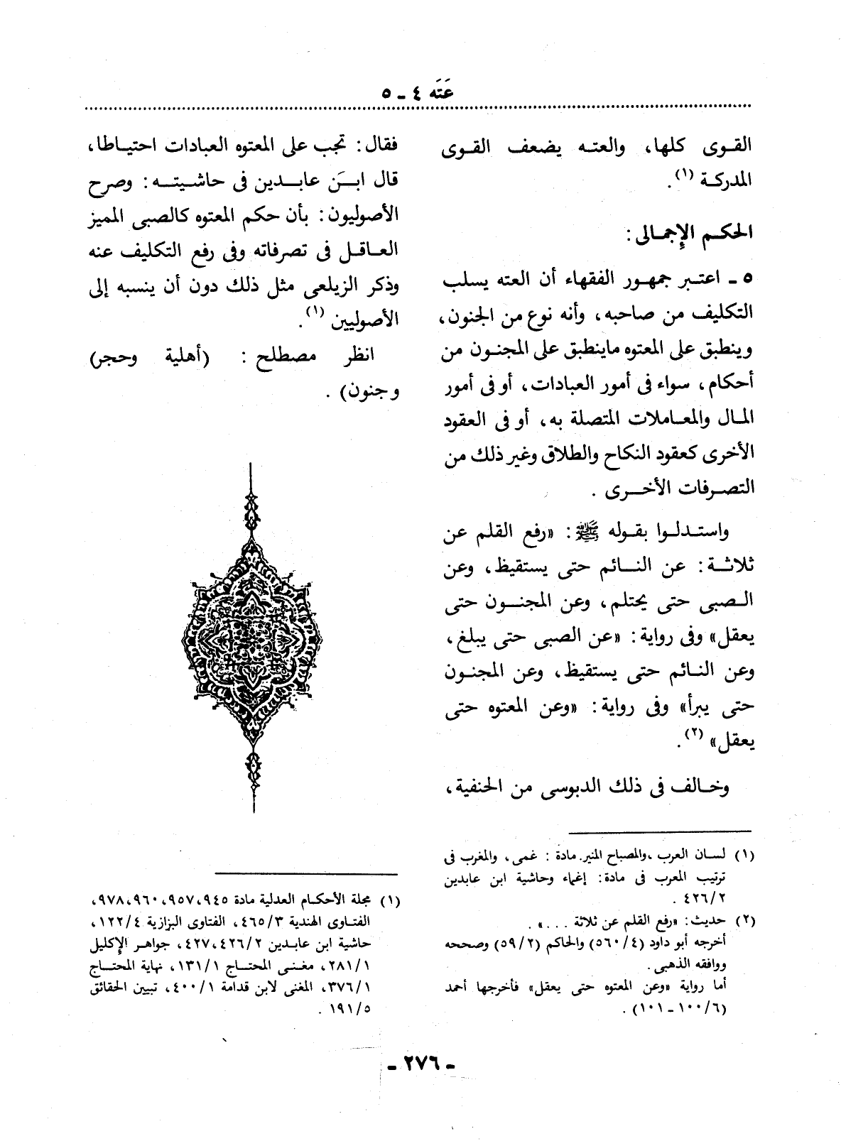 (2) حديث: " رفع القلم عن ثلاثة. . . ". أخرجه أبو داود (4 / 560) والحاكم (2 / 59) وصححه ووافقه الذهبي. أما رواية " وعن المعتوه حتى يعقل " فأخرجها أحمد (6 / 100 - 101) .