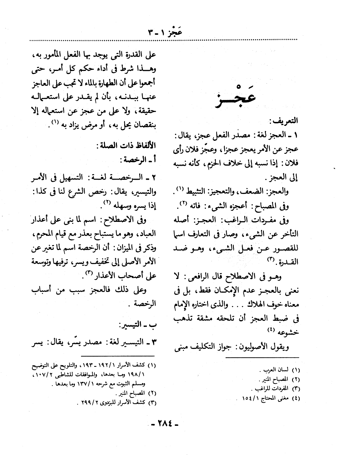 1 - الْعَجْزُ لُغَةً: مَصْدَرُ الْفِعْل عَجْزٌ، يُقَال: عَجَزَ عَنِ الأَْمْرِ يَعْجِزُ عَجْزًا، وَعَجَّزَ فُلاَنٌ رَأْيَ فُلاَنٍ: إِذَا نَسَبَهُ إِلَى خِلاَفِ الْحَزْمِ، كَأَنَّهُ نَسَبَهُ إِلَى الْعَجْزِ.