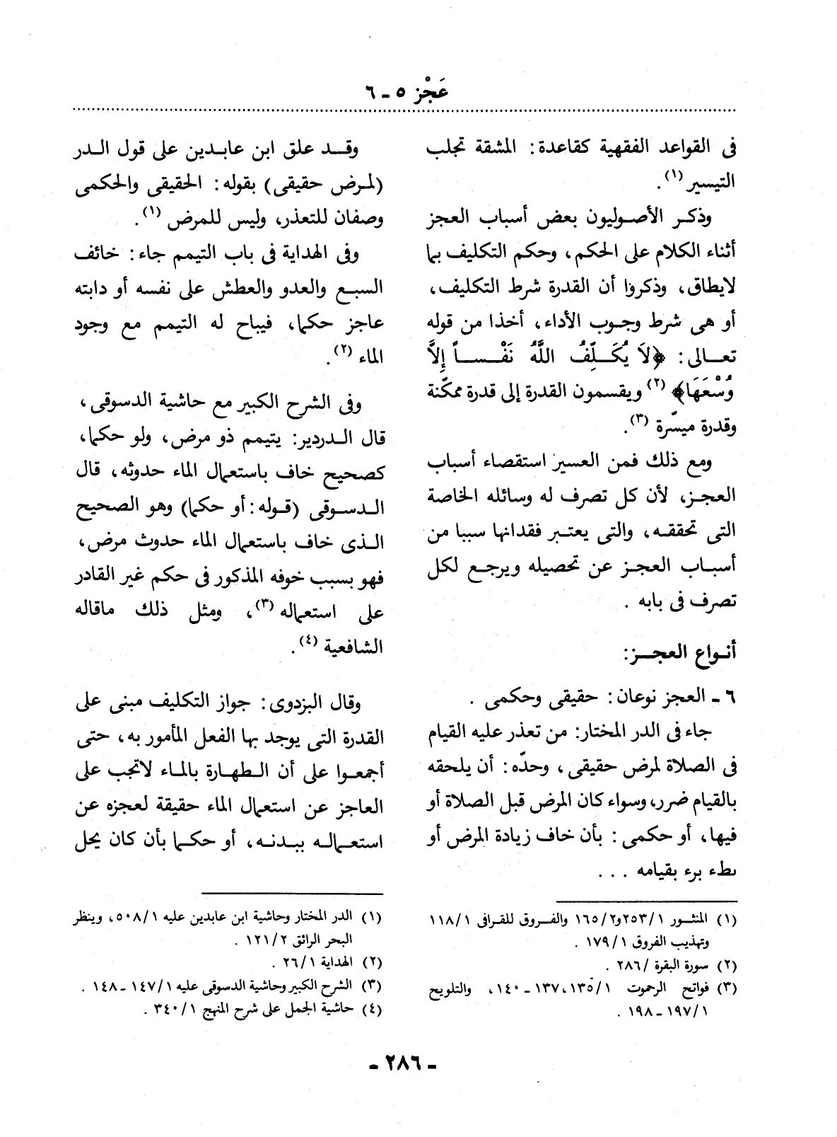 6 - الْعَجْزُ نَوْعَانِ: حَقِيقِيٌّ وَحُكْمِيٌّ.