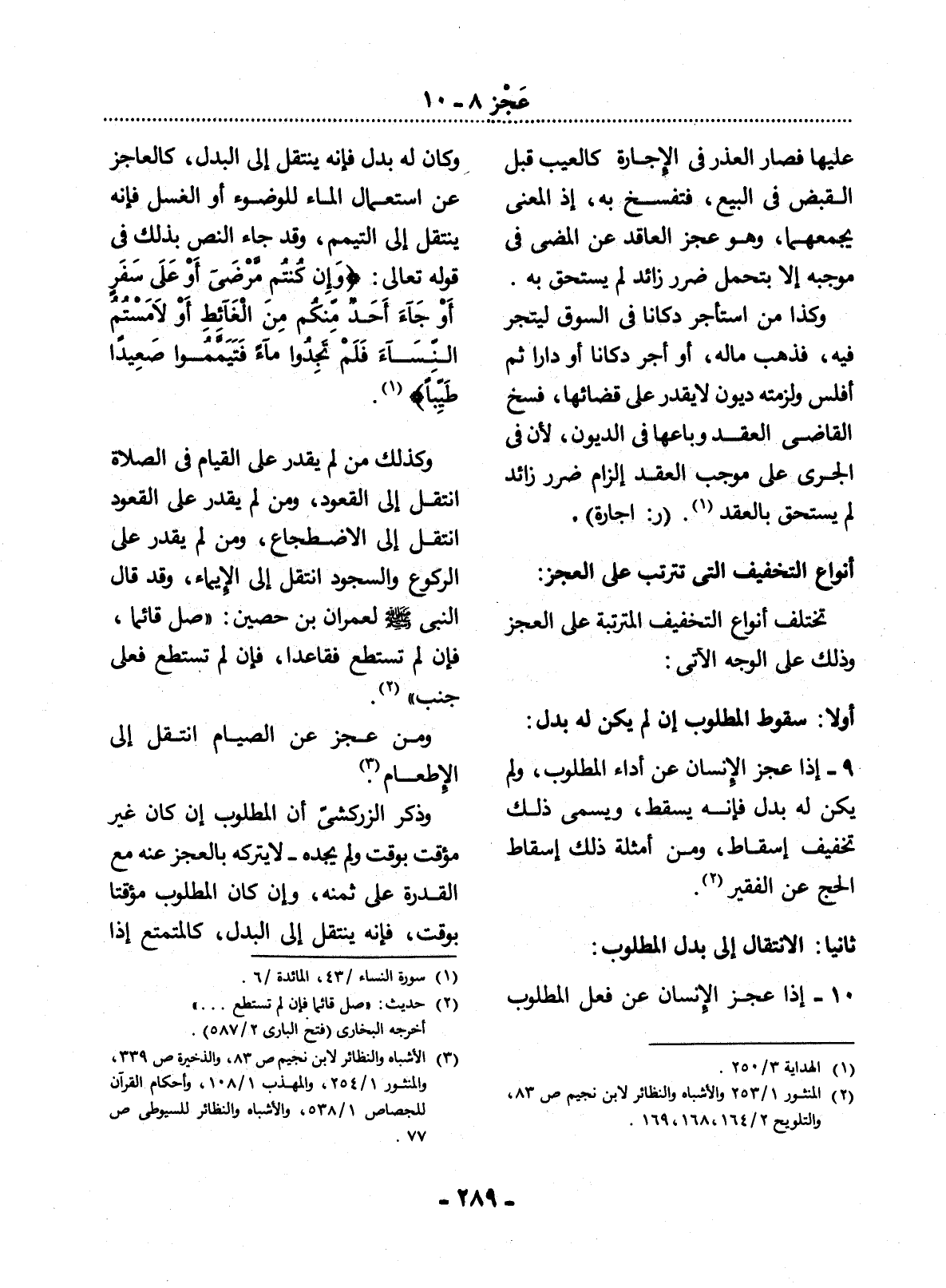 (2) المنثور 1 / 253 والأشباه والنظائر لابن نجيم ص 83، والتلويح 2 / 164، 168، 169.