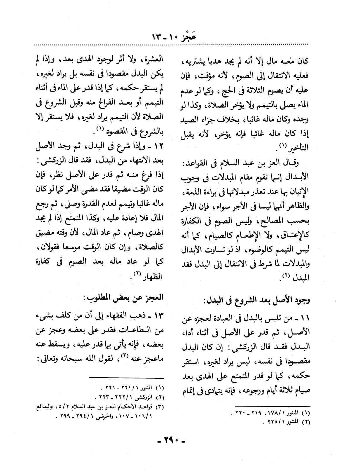 (3) قواعد الأحكام للعز بن عبد السلام 2 / 5، والبدائع 1 / 106 - 107، والخرشي 1 / 294 - 299.