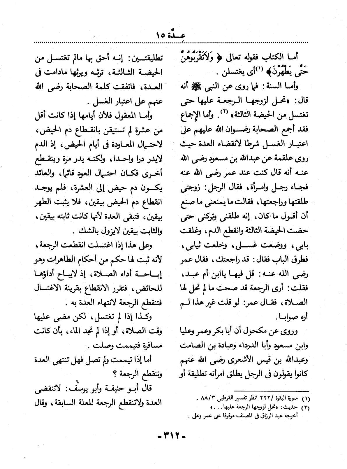(1) سورة البقر / 222 انظر تفسير القرطبي 3 / 88.