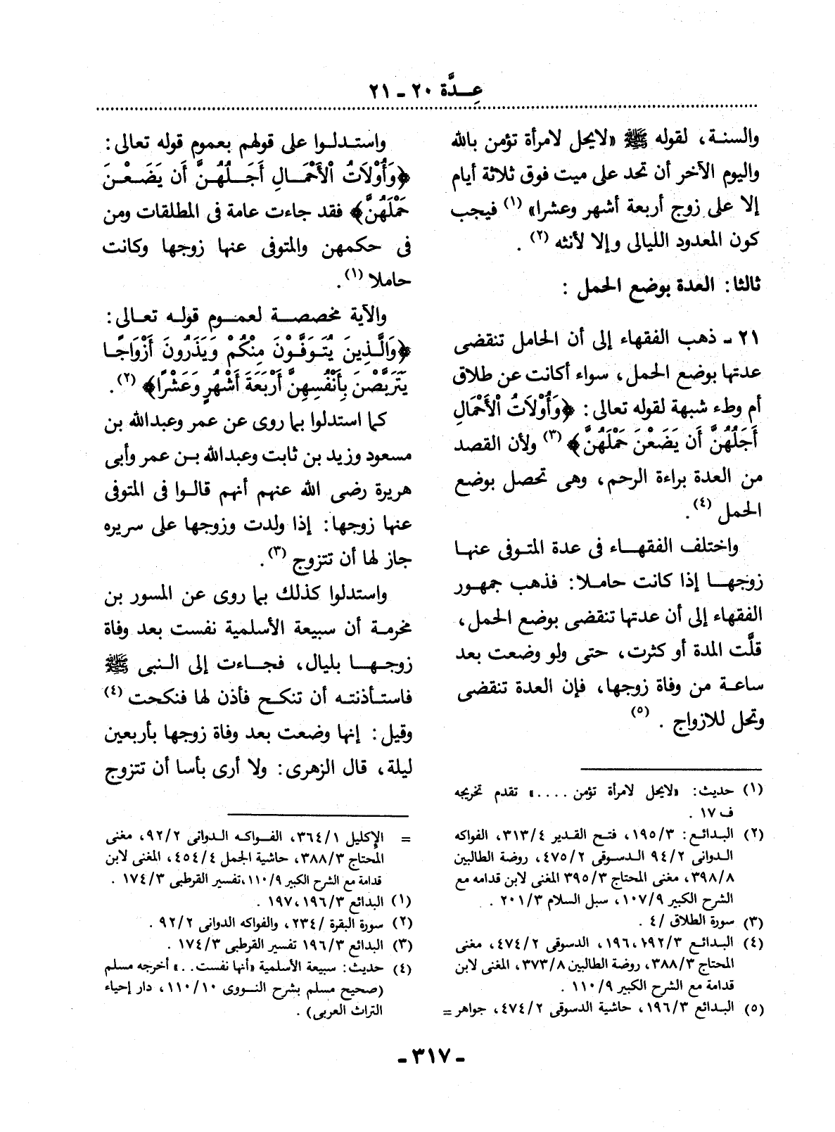 (5) البدائع 3 / 196، حاشية الدسوقي 2 / 474، جواهر الإكليل 1 / 364، الفواكه الدواني 2 / 92، مغني المحتاج 3 / 388، حاشية الجمل 4 / 454، المغني لابن قدامة مع الشرح الكبير 9 / 110، تفسير القرطبي 3 / 174.