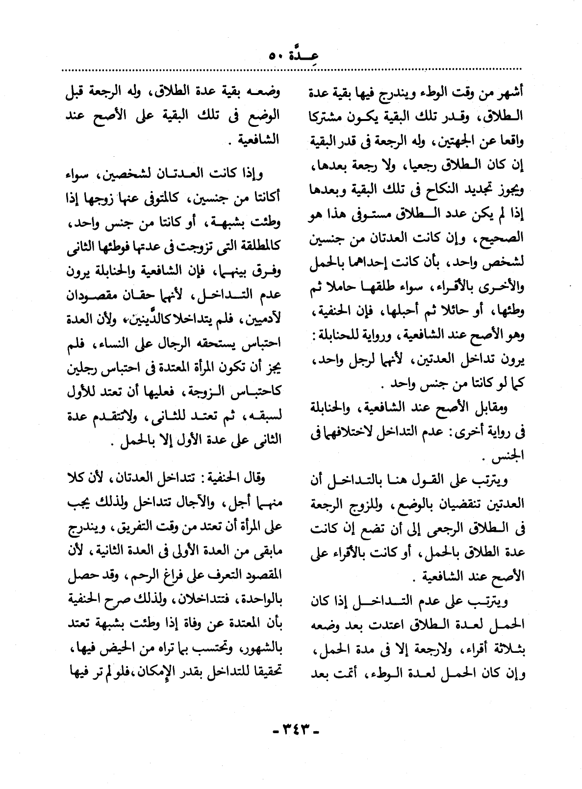 وَإِذَا كَانَتِ الْعِدَّتَانِ لِشَخْصَيْنِ، سَوَاءٌ أَكَانَتَا مِنْ جِنْسَيْنِ، كَالْمُتَوَفَّى عَنْهَا زَوْجُهَا إِذَا وُطِئَتْ بِشُبْهَةٍ، أَوْ كَانَتَا مِنْ جِنْسٍ وَاحِدٍ، كَالْمُطَلَّقَةِ الَّتِي تَزَوَّجَتْ فِي عِدَّتِهَا فَوَطِئَهَا الثَّانِي وَفُرِّقَ بَيْنَهُمَا، فَإِنَّ الشَّافِعِيَّةَ وَالْحَنَابِلَةَ يَرَوْنَ عَدَمَ التَّدَاخُل، لأَِنَّهُمَا حَقَّانِ مَقْصُودَانِ لآِدَمِيَّيْنِ، فَلَمْ يَتَدَاخَلاَ كَالدَّيْنَيْنِ. وَلأَِنَّ الْعِدَّةَ احْتِبَاسٌ يَسْتَحِقُّهُ الرِّجَال عَلَى النِّسَاءِ، فَلَمْ يَجُزْ أَنْ تَكُونَ الْمَرْأَةُ الْمُعْتَدَّةُ فِي احْتِبَاسِ رَجُلَيْنِ كَاحْتِبَاسِ الزَّوْجَةِ، فَعَلَيْهَا أَنْ تَعْتَدَّ لِلأَْوَّل لِسَبْقِهِ، ثُمَّ تَعْتَدُّ لِلثَّانِي، وَلاَ تَتَقَدَّمُ عِدَّةُ الثَّانِي عَلَى عِدَّةِ الأَْوَّل إِلاَّ بِالْحَمْل.