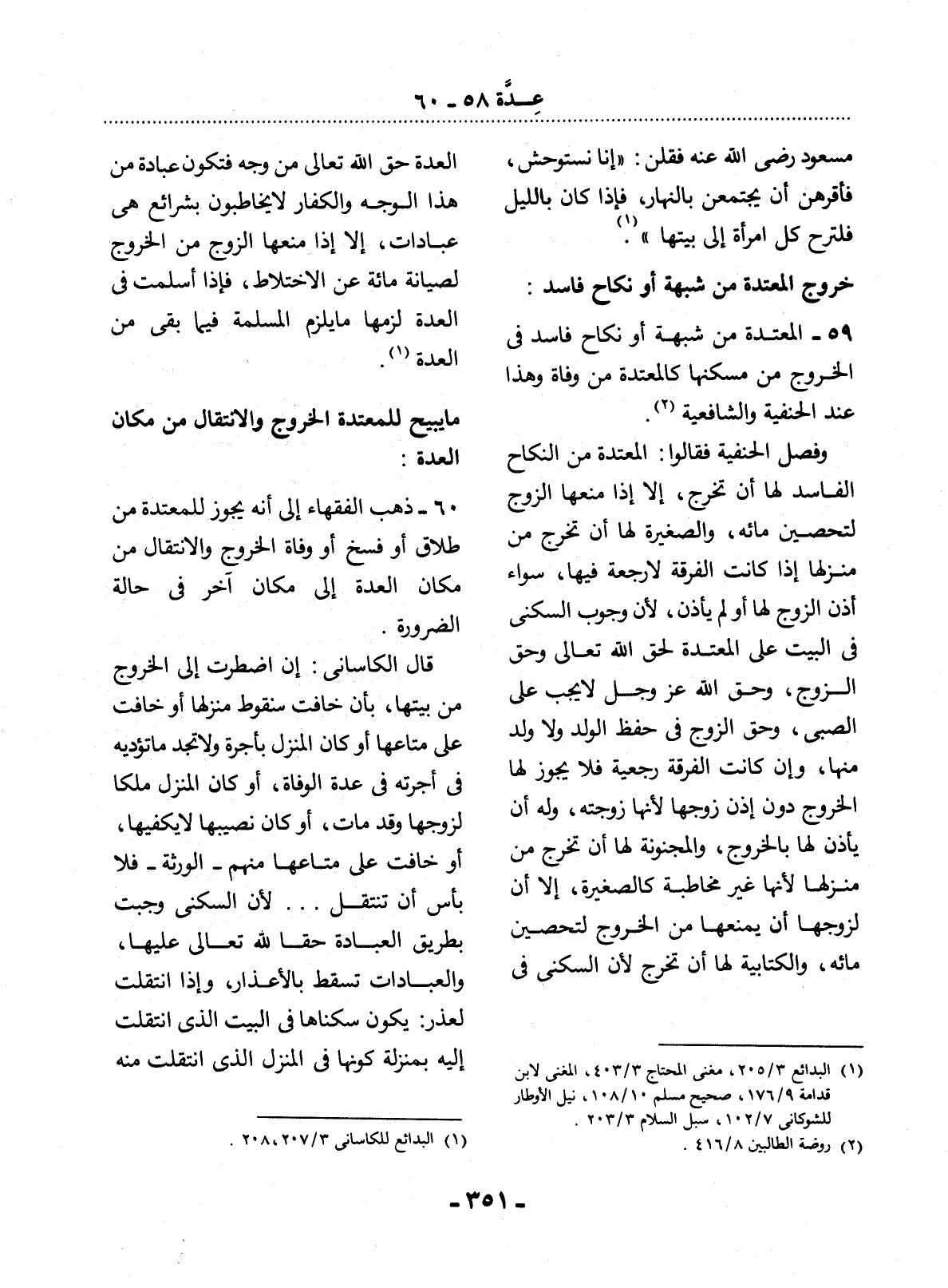 (1) البدائع 3 / 205، مغني المحتاج 3 / 403، المغني لابن قدامة 9 / 176، صحيح مسلم 10 / 108، نيل الأوطار للشوكاني 7 / 102، سبل السلام 3 / 203.