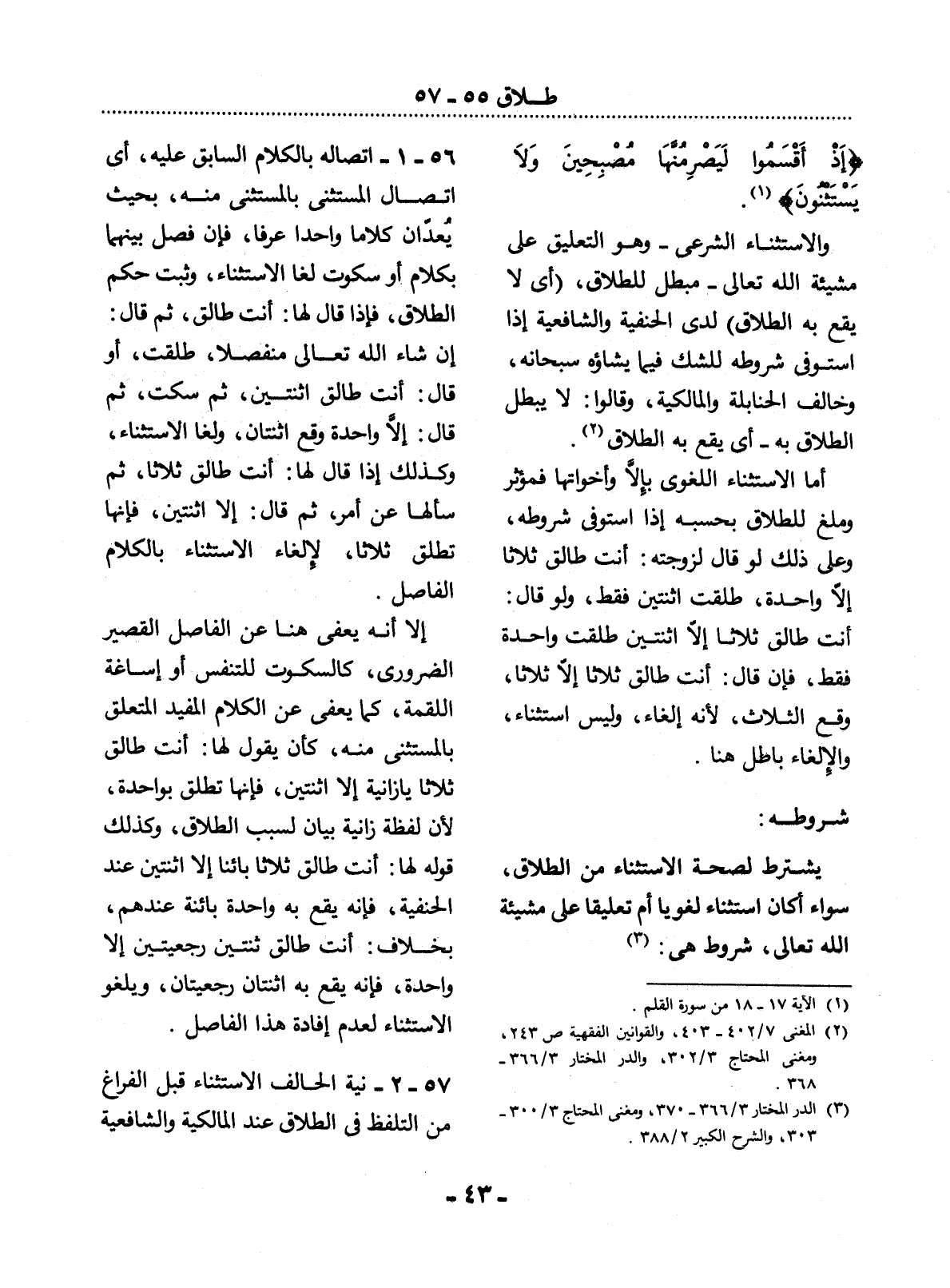 57 - 2 - نِيَّةُ الْحَالِفِ الاِسْتِثْنَاءَ قَبْل الْفَرَاغِ مِنَ التَّلَفُّظِ فِي الطَّلاَقِ عِنْدَ الْمَالِكِيَّةِ وَالشَّافِعِيَّةِ