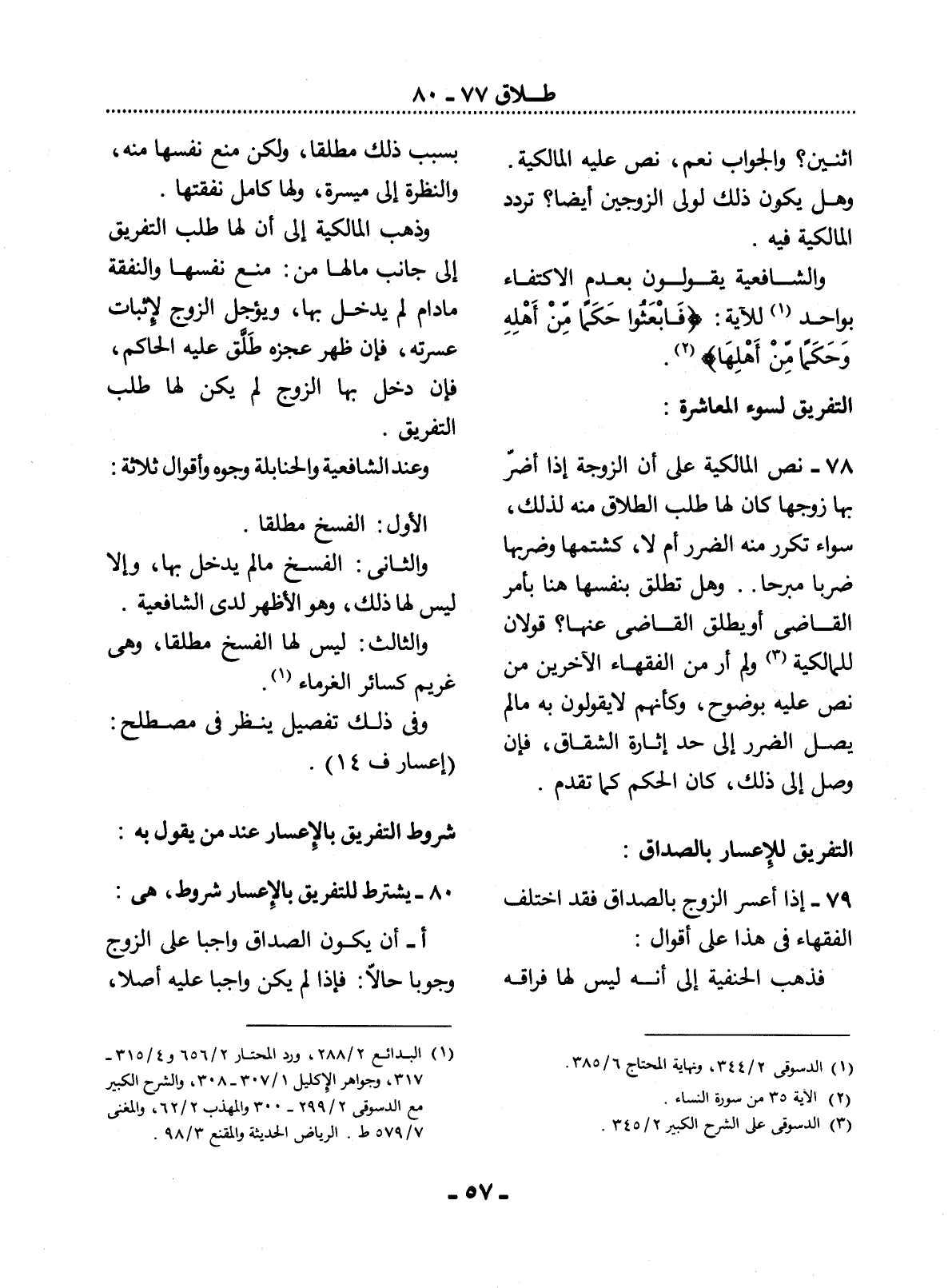 80 - يُشْتَرَطُ لِلتَّفْرِيقِ بِالإِْعْسَارِ شُرُوطٌ، هِيَ: