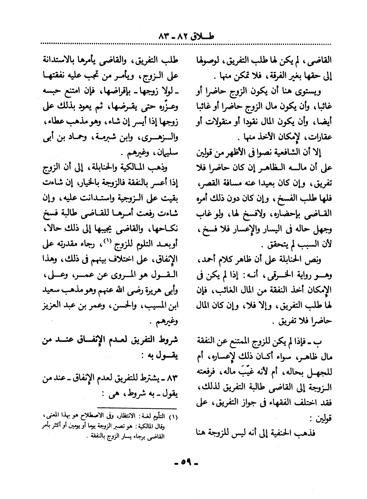 83 - يُشْتَرَطُ لِلتَّفْرِيقِ لِعَدَمِ الإِْنْفَاقِ - عِنْدَ مَنْ يَقُول - بِهِ شُرُوطٌ، هِيَ: